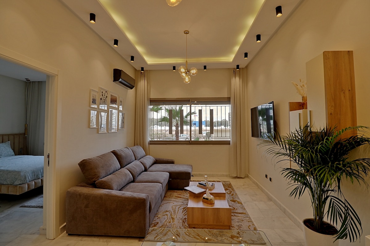 Nos appartements sont une véritable symphonie d’élégance et de beauté naturelle, qui en fait un séjour exceptionnel, ce magnifique appartement vous accueille dans une atmosphère chaleureuse et conviviale tout au long de l’année, Bénéficiez d’un cadre de vie exceptionnel, entourée d’une nature luxuriante, de somptueux jardins intérieurs et d’une splendide piscine. A l’entrer du complexe un parking gratuit ouvert 24/24 sécurisé 100% A votre arrivé une réception est disponible 24/24