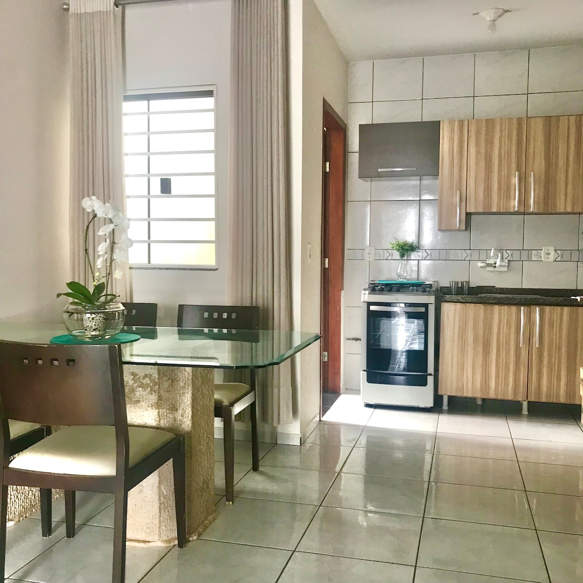Aproveite sua estadia em Goioerê, em uma casa em bairro tranquilo. Possui no quarto uma cama de casal box, ar condicionado split, guarda-roupa e poltronas. Na cozinha contamos com geladeira side by side, fogão cooktop, pia, microondas, bancada, mesa, cadeira e utensílios para o dia a dia. Na sala um sofá espaçoso, com painel e smart tv.