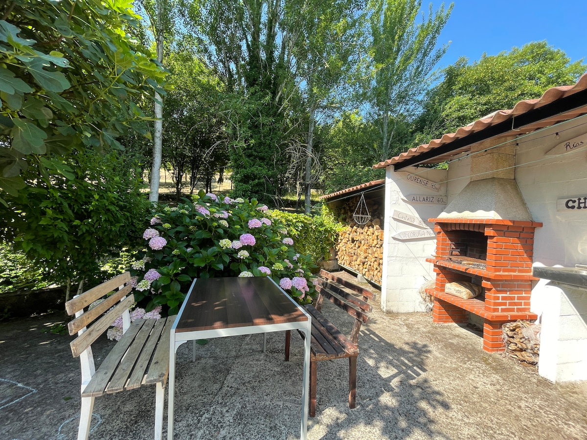 Dom wiejski Curuxa znajduje się w samym sercu Valdeorras. W naszym małym, dwupiętrowym domu możesz cieszyć się kuchnią-salonem z sofą przed pięknym kominkiem, sypialnią z dużym podwójnym łóżkiem, kominkiem, łazienką i balkonem. Możesz również cieszyć się pięknym ogrodem nad brzegiem rzeki z grillem na drewno, gdzie możesz zjeść śniadanie, obiad lub kolację pod baldachimem i sofą pod pergolą. Jeśli szukasz relaksu i spokoju, to jest to gwarantowane.