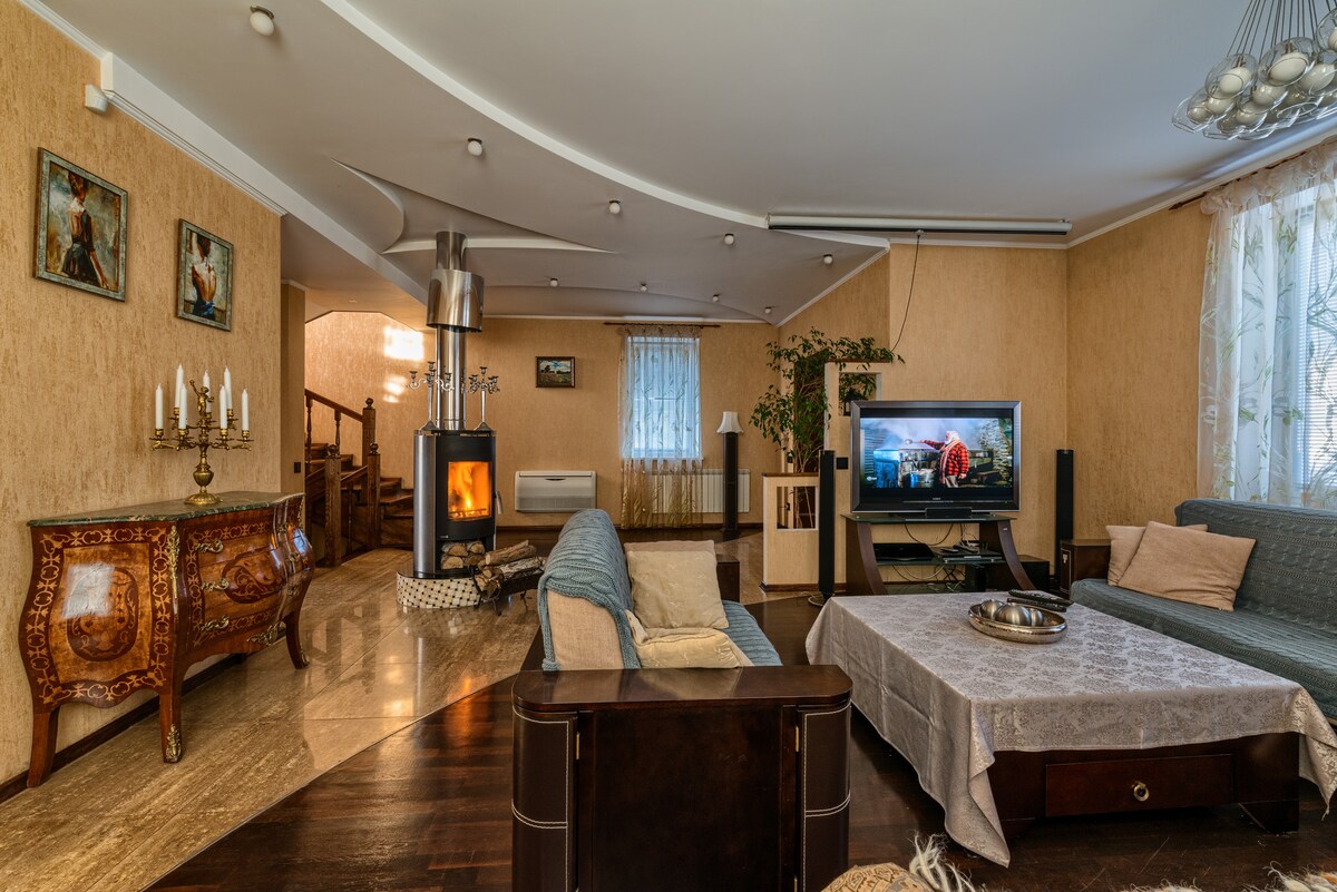 Koshara to nowoczesny ekologiczny dom z dzikiej karpackiej chatki z bali w pobliżu leśnego jeziora, który ma wszystko, co potrzebne do wygodnego pobytu i 20 km od Kijowa, przeznaczony dla maksymalnie 6 osób i 4 łóżka + 1 dodatkowe łóżko. W domu znajduje się przestronny korytarz z dużym stołem dla 6 osób i miękkim kącikiem, jedna sypialnia, łazienka i kuchnia ze wszystkimi niezbędnymi sztućcami. Na terenie domu znajduje się basen, altana z miejscem do grillowania, grille i szaszłyki, parking. Nasz Instagram: Koshara_Chalet