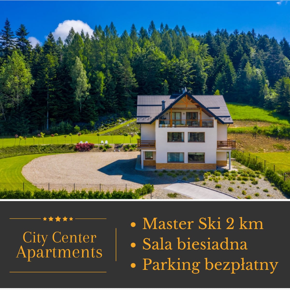 Nasza Willa to duży dom wykończony w górskim stylu, z kominkiem, balią ogrodową i ogromnym ogrodem z placem zabaw dla dzieci! Posiadamy saunę fińską, pokój gier z bilardem, cymbergajem, kinem domowym z projektora oraz systemem karaoke. W lecie można korzystać z rowerów, boiska do siatkówki, piłki nożnej, koszykówki, paleniska, altany i murowanego grilla! Obiekt posiada klimatyzację, a także zewnętrzny monitoring.