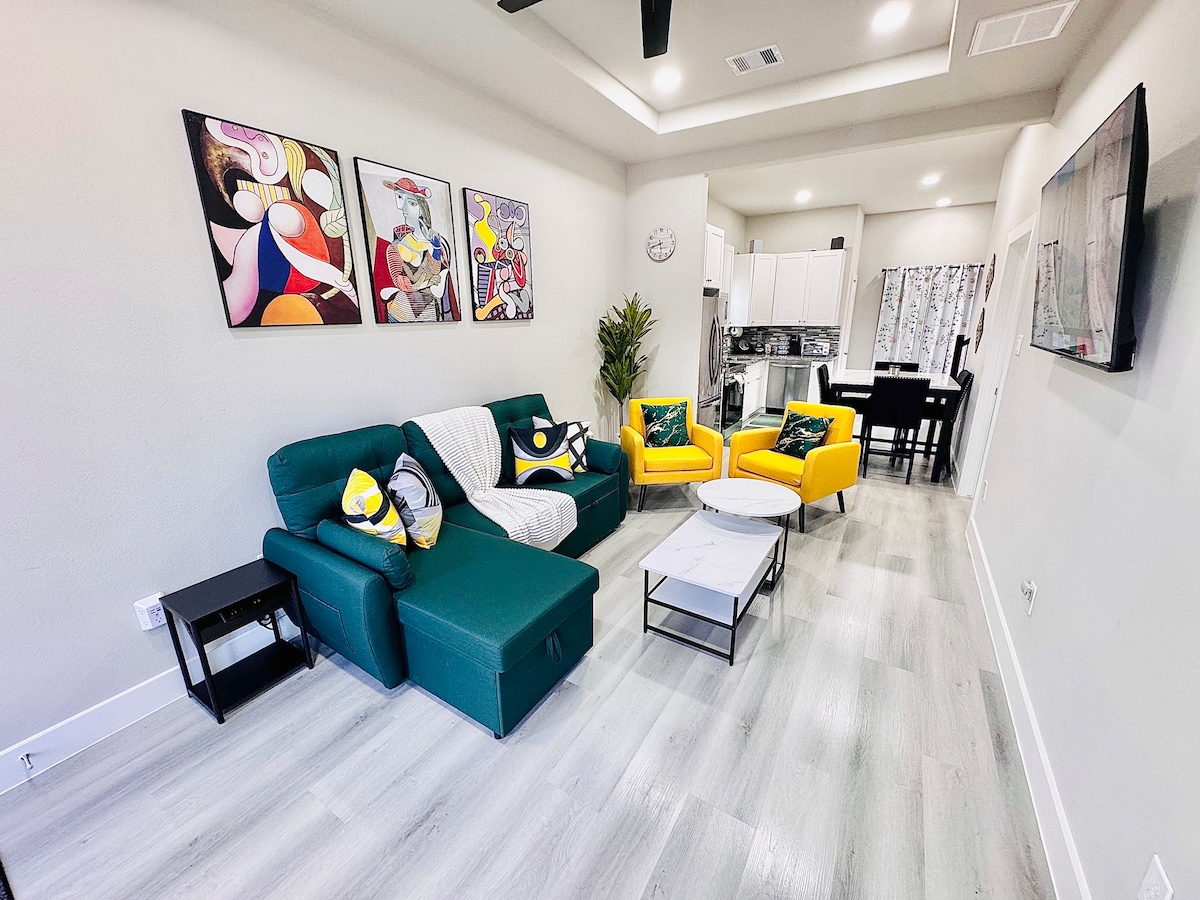Witamy w tym przestronnym domu z 2 sypialniami i 2 łazienkami, który jest idealny dla rodziny, znajomych i na wypoczynek w mieście! Nasza nieruchomość jest idealna dla osób podróżujących służbowo i na wyjazdy medyczne do Houston. Ciesz się prywatnością, szybkim Wi-Fi i przytulnymi pokojami, ponieważ jesteś mniej niż 10 minut od centrum miasta, Teksaskiego Centrum Medycznego, stadionu NRG, dzielnicy muzeów, Hermann Park i zoo w Houston. Wnętrze tego domu, położonego w obrębie pętli 610, jest bardzo urzekające i relaksujące.