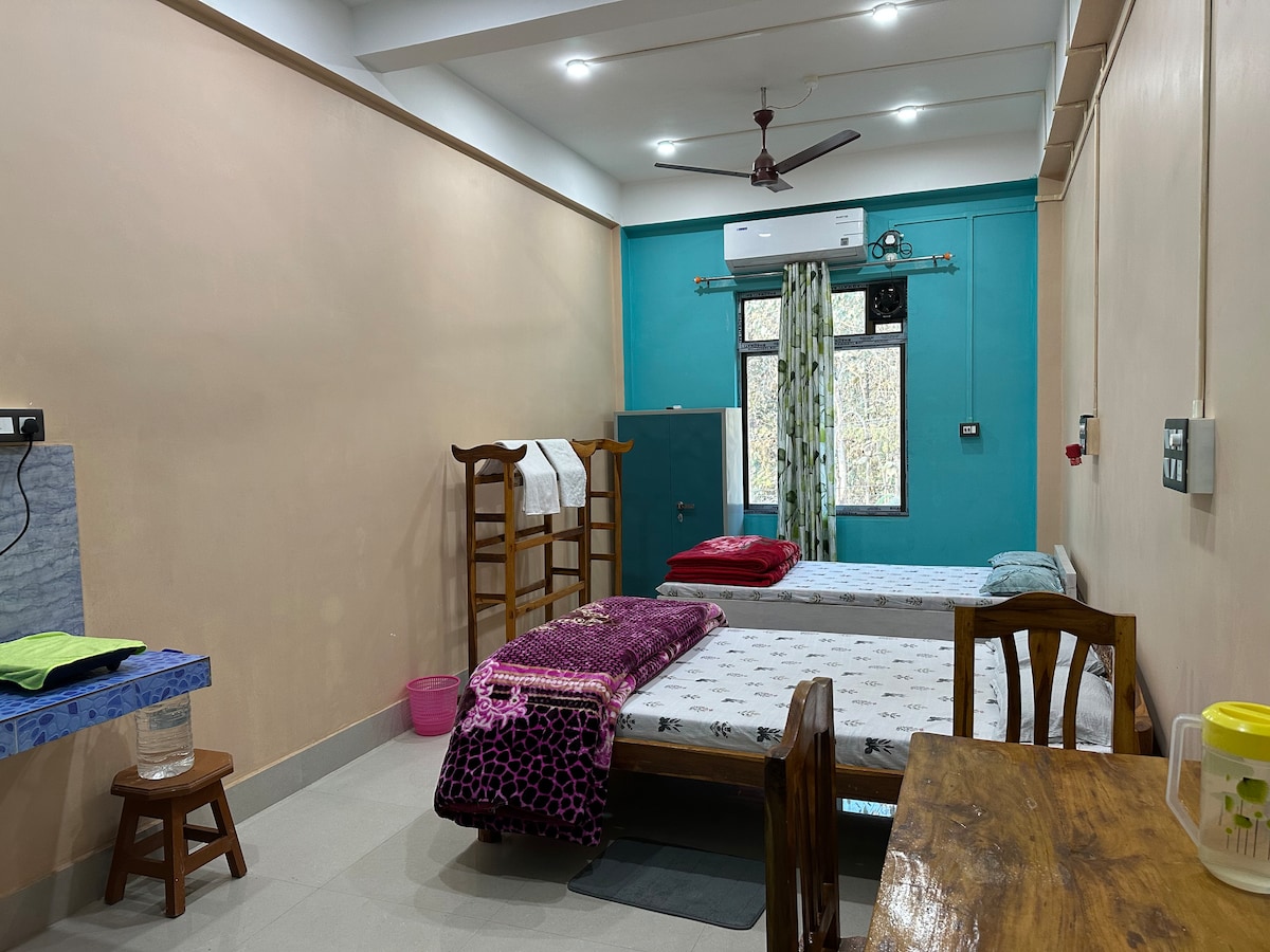 Położona w spokojnej okolicy Parku Narodowego Kaziranga, nasza nieruchomość oferuje miejsce idealne dla miłośników przyrody i tych, którzy szukają spokojnego wypoczynku. Zanurz się w pięknie dzikiej przyrody, ciesząc się wygodą domu. Ciesz się domowymi posiłkami przygotowanymi z miłością, a jeśli wolisz, skorzystaj z małego aneksu kuchennego, aby przygotować własne posiłki. (1 łóżko typu King dostępne dla 2 osób + 500 INR dla dodatkowych osób). Jeśli przyjdziesz w grupie, mamy do dyspozycji 4 pokoje.