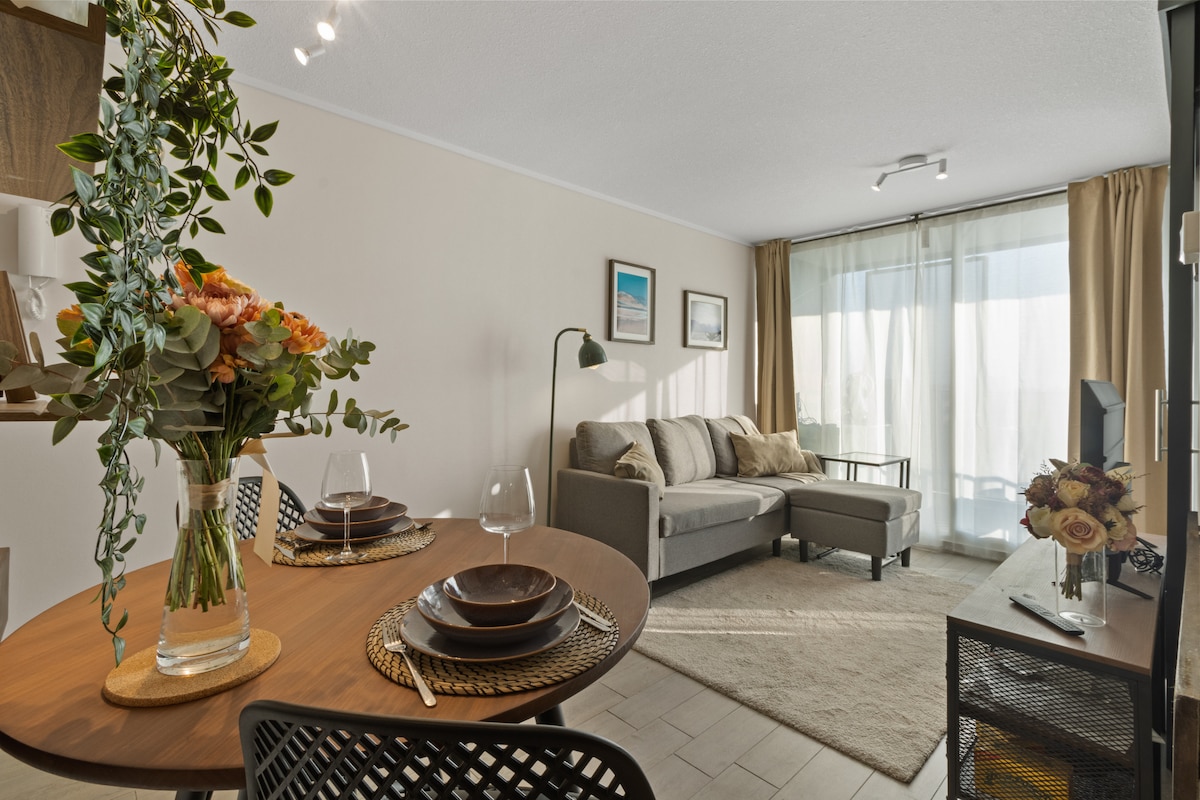 Ciesz się nowoczesnym, jasnym i starannie urządzonym apartamentem. W pełni wyposażone, aby zapewnić komfortowy pobyt, posiada podwójne łóżko, rozkładaną sofę, zintegrowaną kuchnię, telewizor Smart TV, Wi-Fi i balkon z dobrym widokiem. Położony w bezpiecznej i połączonej okolicy Santiago, idealny do odpoczynku lub pracy. Ciepła, funkcjonalna przestrzeń z dbałością o każdy szczegół, dzięki czemu poczujesz się jak w domu. Doskonała lokalizacja: blisko Plaza Ñuñoa i centrum handlowego Portal Ñuñoa, ośrodków sportowych. Z dobrym transportem.