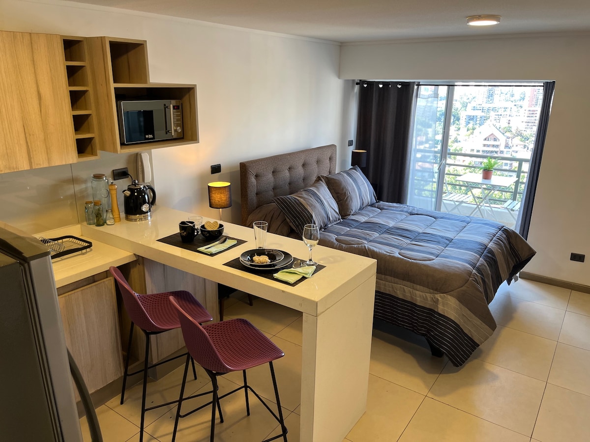 Budź się każdego ranka z panoramicznym widokiem na Andy z 15. piętra tego przytulnego i nowoczesnego apartamentu typu studio. Nowe, starannie urządzone i wyposażone tak, abyś poczuł się jak w domu. Idealne dla par i podróżnych, ze strategiczną i bezpieczną lokalizacją przed stacją metra Irarrázaval na liniach 3 i 5, z bezpośrednim dostępem do całego Santiago. ⚡ 600 MB symetrycznego internetu światłowodowego: szybkie i stabilne połączenie.