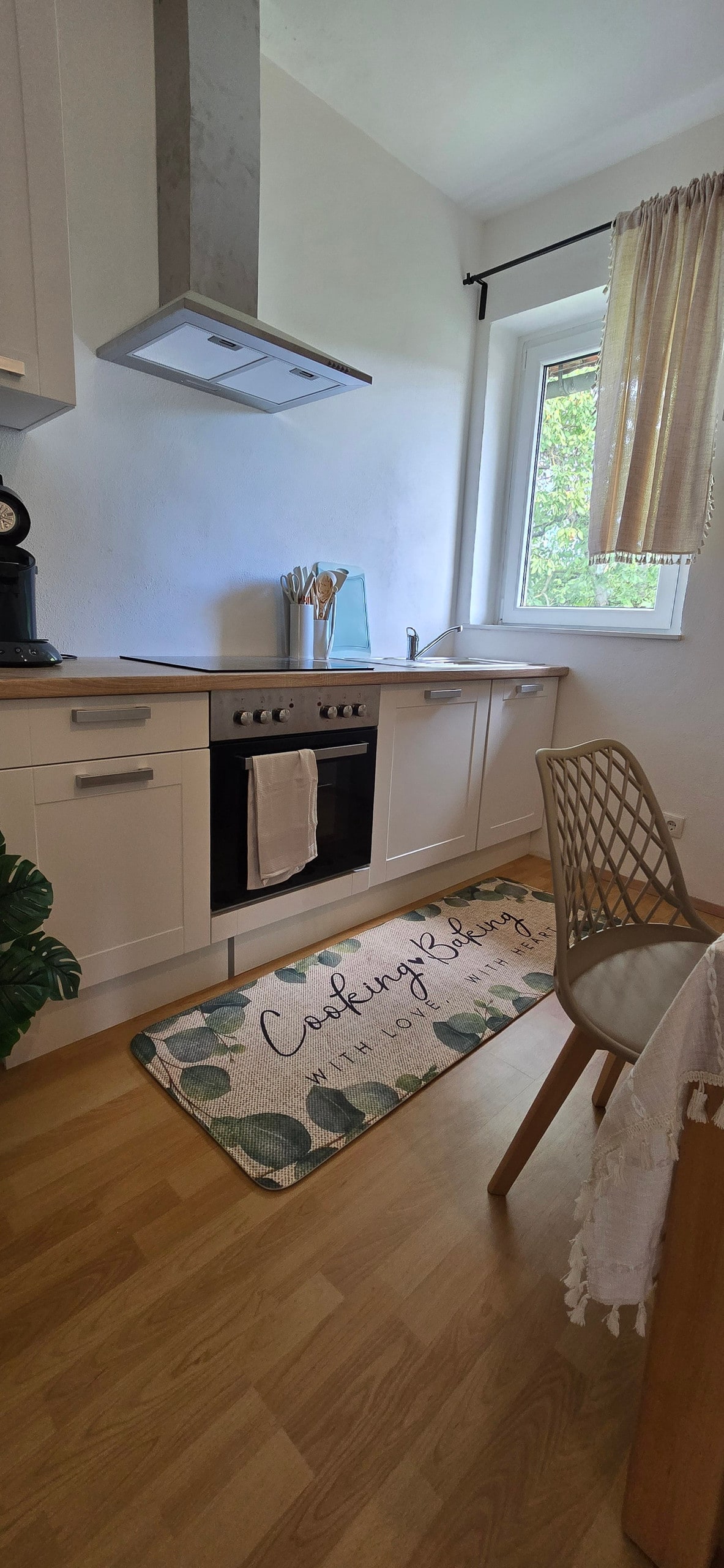Die Wohnung enthält eine vollausgestattete hochwertige Küche mit Mikrowelle, Senso-Padmaschine, Backofen, Kühl-Gefrier-Kombi und Toaster. Neben den 2 Boxspringbetten stehen zwei Schlafsofas zur Verfügung. Handtücher und Bettwäsche sind optional. Im Garten finden Sie Hühner und 1 Zwerghahn. Gegenüber befindet sich ein kleiner Lebensmittelladen mit Bäcker- und Metzgerei der von 7 bis 12 geöffnet hat. Im Ort liegt ein Restaurant. Die vielen Fahrrad- und Wanderwege kennzeichnen die Gegend.
