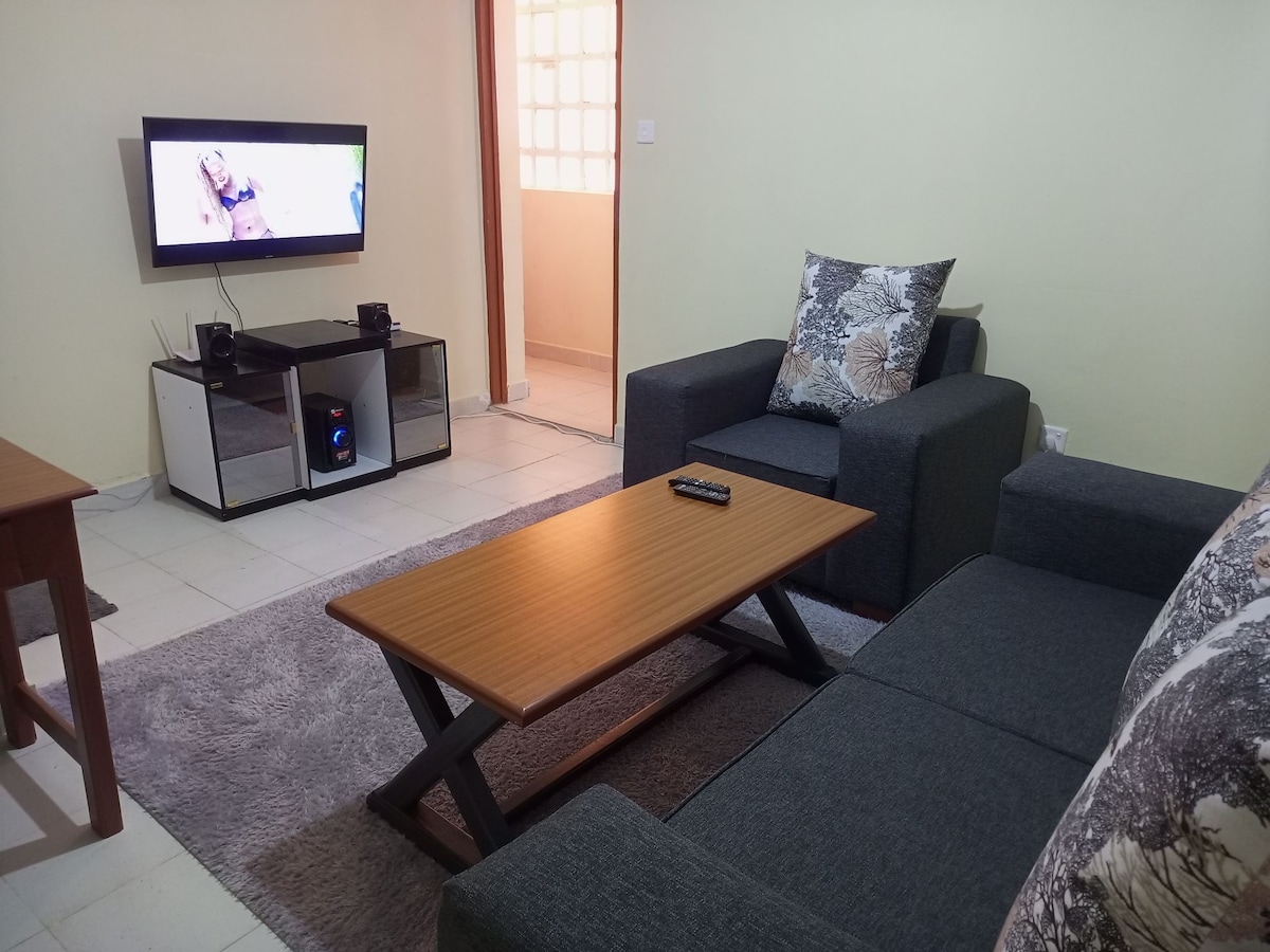 Ciesz się komfortowym pobytem w tym nowoczesnym, czystym i ciepłym apartamencie z 1 sypialnią położonym przy drodze Nyeri-Nairobi, kilka metrów przed miastem Nyeri. Unikalny styl, który pasuje do nowoczesnego podróżnika, idealny zarówno na krótki, jak i długi pobyt lub pobyt służbowy podczas wizyty w hrabstwie Nyeri. W sąsiedztwie drogi zapewniającej łatwy dostęp do miasta, w pobliżu słynnych lokali towarzyskich i restauracji, bezpieczny z bezpłatnym parkingiem na miejscu. Witamy!