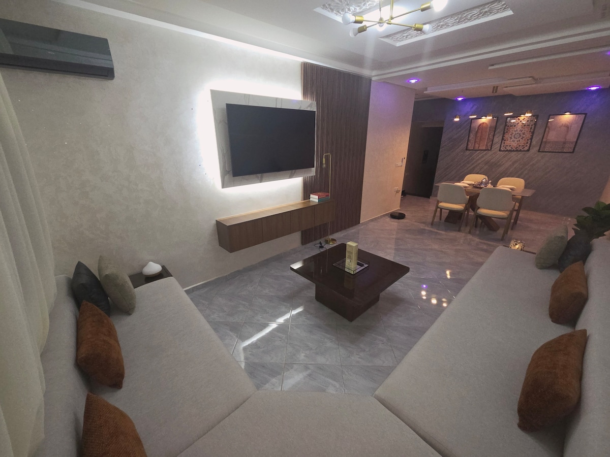 Découvrez notre magnifique appartement à deux chambres, idéal pour votre séjour à Meknès. Profitez d'un spacieux salon, d'une cuisine entièrement équipée, d'une salle de bains moderne et d'une salle à manger accueillante. Nous avons pris soin de votre confort avec des matelas médicaux pour des nuits paisibles. De plus, le parking est inclus pour votre commodité .Réservez dès maintenant pour vivre une expérience inoubliable dans notre superbe appartement !