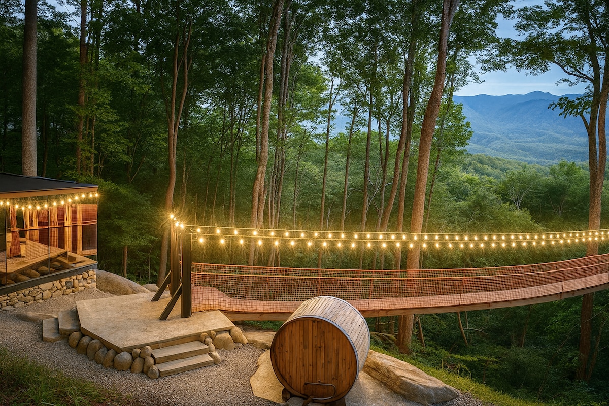 Most Sky Bridge do luksusowej szklanej kabiny • Widok na LeConte