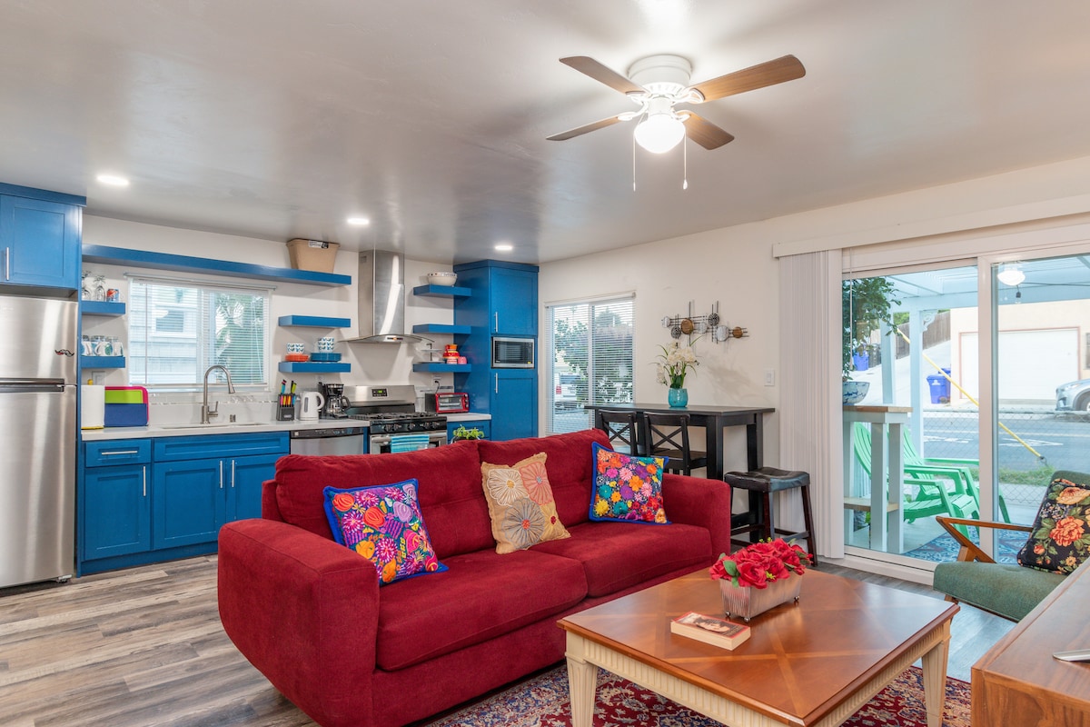 Nasz jasny i wygodny domek z jedną sypialnią/ jedną kąpielą na plaży to idealne miejsce do korzystania z Ocean Beach i San Diego. Komfortowo usytuowany jest trzy przecznice w dół ulicy od plaży z pełną kuchnią, łazienką i prywatnym dziedzińcem. Do dyspozycji Gości jest bezpłatny parking. Podjęliśmy dodatkowe kroki w celu ograniczenia rozprzestrzeniania się wirusa COVID-19 dzięki ulepszonemu głębokiemu sprzątaniu, praniu pościeli podczas cyklu sanitarnego oraz zapewnieniu ściereczek higienicznych dla gości.