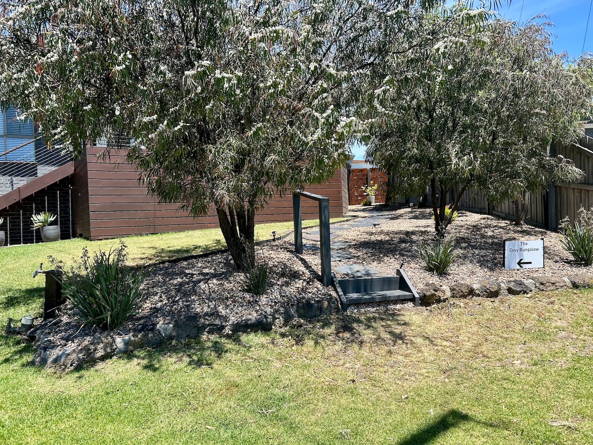 Cosy bungalow with ensuite, beachy decor, extremely comfortable queen sized bed Cont. breakfast provided. Private, roomy, detached from house, ideal for a couple. Infants over 6 mths [ mobile - i.e. crawling and above ] are discouraged for safety reasons We are a well travelled couple who enjoy interacting with people. The house is 90 secs drive/5 mins walk to one of Victoria's best swimming and fishing beaches, 10 min walk to ferry, 4 mins drive to 5 top wineries and the golf club.