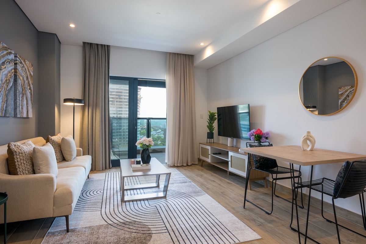 Witamy w luksusowym hotelu Radisson Blu w Umhlanga Rocks, gdzie współczesny design łączy się z relaksującą elegancją wybrzeża Oceanu Indyjskiego. Ten pięknie urządzony apartament z jedną sypialnią oferuje połączenie nowoczesnego komfortu i hotelowego wyrafinowania, idealne zarówno dla osób podróżujących służbowo, jak i w celach wypoczynkowych. Ciesz się stylowymi wnętrzami, prywatnym balkonem z zapierającymi dech w piersiach widokami i dostępem do światowej klasy udogodnień w jednym z najbardziej prestiżowych miejsc w Umhlanga.