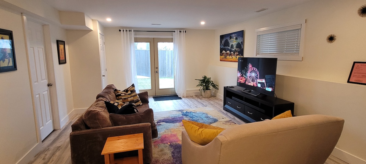 Witamy w naszym jasnym, przytulnym i licencjonowanym mieszkaniu w piwnicy w zachodniej części Kingston. Codziennie rano delektuj się świeżą, lokalnie paloną kawą, a wieczorem spędź czas przy kominku gazowym. Parking dla jednego pojazdu, centrum handlowe, lokalne restauracje i centrum Invista w odległości 10 minut, a centrum miasta w 18 minutach jazdy. Niezależnie od tego, czy jesteś tu w jakimś celu, czy po prostu chcesz się rozejrzeć, mamy wszystko, czego potrzebujesz. Nr licencji: LCRL20210000493