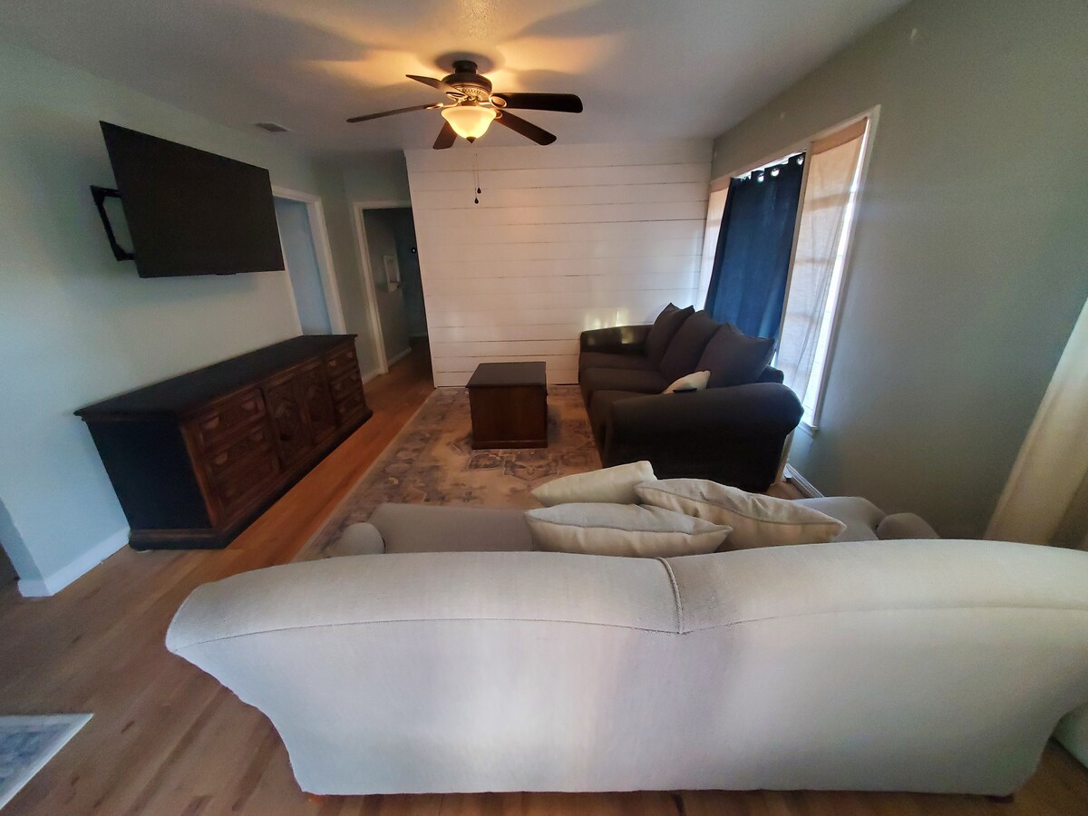 Ładnie urządzony, komfortowy dom z dwiema dużymi, odizolowanymi sypialniami i bardzo prywatnym tarasem na świeżym powietrzu. Aby Twój pobyt był bardziej relaksujący – łóżko typu king size, łóżko typu queen size, dwa pełne łóżka i dwie sofy. Ponadto nowy system RO, gazowe kłody kominkowe, pralka/suszarka/zmywarka. Bezpłatny internet z transmisją strumieniową na 58-calowym Samsungu, 55-calowym Samsungu i 43-calowym Roku. W kuchni znajdziesz wszystkie potrzebne garnki, patelnie, naczynia, a w łazience pościel. Przenośne łóżeczko dziecięce Dream on Me. Mały pies mile widziany za opłatą za zwierzę. Jeden futrzany przyjaciel na rezerwację.