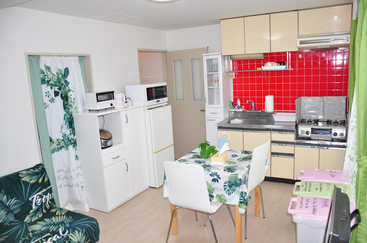 【Yoshinaga B&B Snow】 欢迎入住我们位于札幌市北区的独栋民宿,步行2分钟即达地铁【北34条站】,搭乘南北线直达【札幌站】仅7分钟,【大通】9分钟,交通极为便利。附近也有机场直达巴士站,步行7分钟可达。 房屋宽敞舒适,最多可入住10人。设有3间卧室及客厅高台榻榻米区: • 双人床1张(2人) • 单人床3张(3人) • 榻榻米房3套日式床垫(3人) • 客厅高台榻榻米配双人床垫(2人),一楼免爬楼,适合年长者入住。 周边生活机能优越:步行范围内有SUKIYA牛丼、炭火烤肉店【ときん】、烧鸟店【大吉】、北海道名点【六花亭】、超市【スーパーエース】、7-Eleven与全家便利店,吃饭购物都很方便。 室内配备厨房、冰箱、基本调味料、微波炉等设备,可自炊。我们也为您准备了洗发水、护发素、沐浴露、牙刷、毛巾、浴巾、纸巾等生活用品。 附设庭院,四季皆宜。春秋清风宜人,夏日绿意盎然,冬天还能赏雪。 欢迎您带着家人朋友,享受札幌舒适的时光!