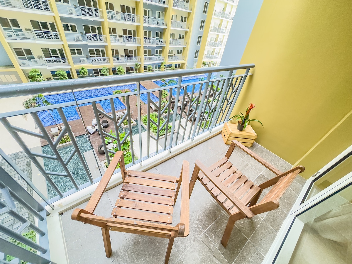 Przytulne mieszkanie w Mandaluyong | Balkon, basen i Netflix