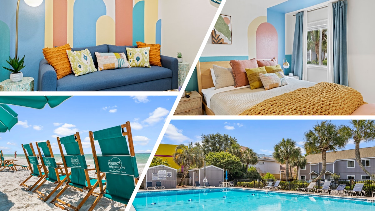 Witaj w Stay Salty! Oferujemy dużą przestrzeń i nowe udogodnienia dla Twojego komfortu z 2 miejscami parkingowymi, 1 oznaczonym przy drzwiach i 1 nieoznaczonym w kompleksie. 2 minuty lub mniej spacerem od drzwi wejściowych do naszej prywatnej plaży po drugiej stronie Scenic Gulf Drive! Podgrzewany basen 20 grudnia 2024 r. – Wielkanoc, dla 8 osób. Mamy dla Ciebie przedpłaconą codzienną konfigurację plaży! 2 krzesła/1 parasolowa usługa plażowa bezpłatnie od 1 marca do 31 października Krótki spacer do Pompano Joes, Kenny D's (środowe wieczory karaoke). Centrum handlowe i outlet w pobliżu!