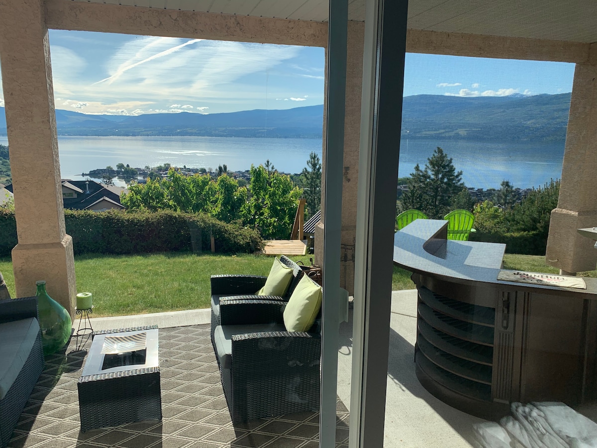 Hands down one of the most stunning views of the Okanagan Valley you'll ever see. Must see to believe. Sweeping view of Okanagan lake and nearby vineyards. This spacious suite is a two minute walk to world famous Mission Hill Winery and a ten minute walk down the hill to Quails Gate Winery. Short driving distance to beaches, golf courses, wineries, restaurants and more. Note: This place is NOT suitable for people with mobility issues (some steps and garden pathway to get to the suite).
