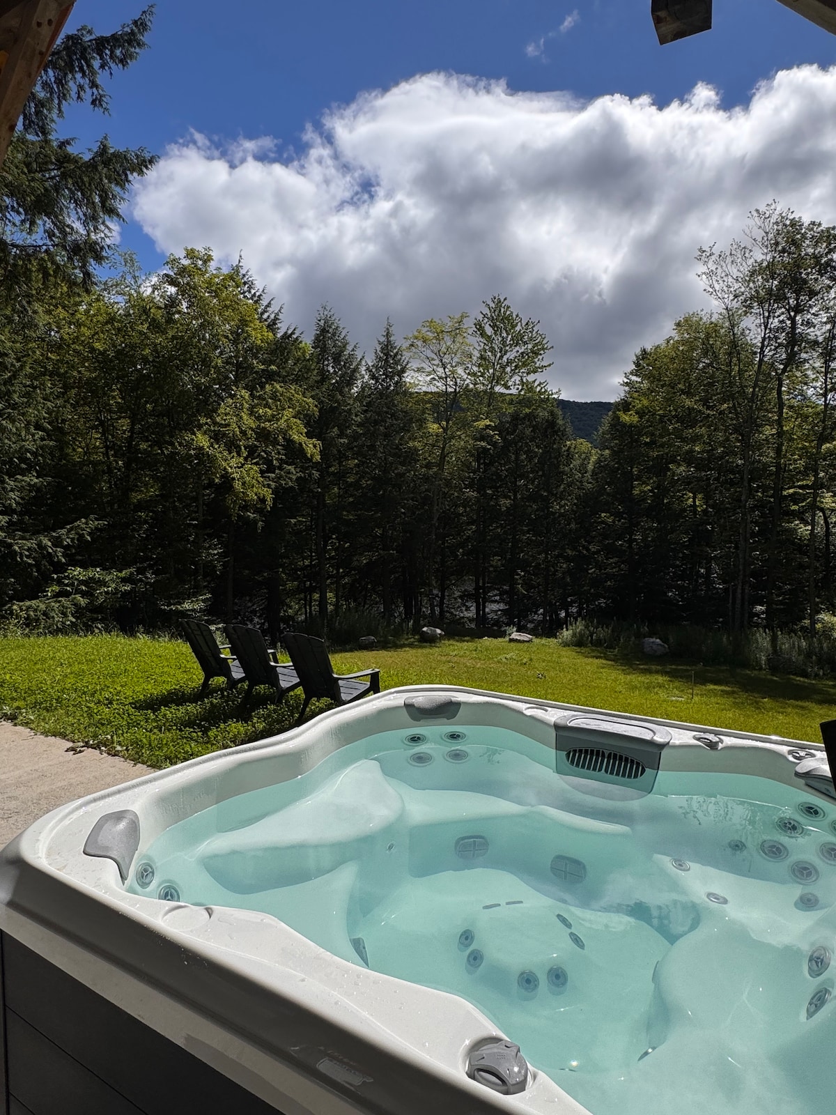 Zamieszkaj w pięknej, wypełnionej światłem, ekskluzywnej chatce w lesie w Sugar Maple Mountain Retreat. Zrelaksuj się pod koniec dnia w wannie z hydromasażem, którą dzielą między siebie 3 domki. Kilka kroków od dwóch malowniczych jezior, ciesz się bezpłatnym sezonowym korzystaniem z naszych kajaków, desek do wiosłowania i rakiet śnieżnych. Wędkuj, jeźdź na rowerze, wędruj po wiejskich drogach lub szlakach na 1275 akrach otaczających chronionych terenów. Zimą wskocz na pobliski szlak VAST. 4 WD wymagane 1 grudnia - 15 kwietnia