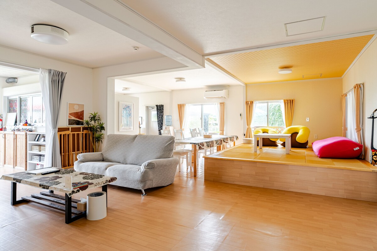 [Możliwość grillowania, maksymalnie 10 osób] Autobus 2/prysznic 2/4 miejsca parkingowe/terasa za opłatą | Idealne miejsce na wyjazd grupowy na Okinawę, mile widziane dzieci