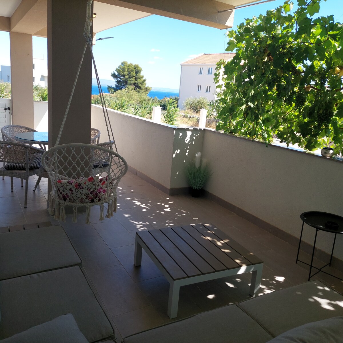 Apartament rozciąga się na ponad 70m2 i może pomieścić 4+2 osoby tylko 35m od plaży. Doskonałe położenie w południowej części Čiovo, prywatny balkon i wspaniały widok na morze i wyspy! Darmowe miejsce parkingowe, bezpłatne Wi-Fi i klimatyzacja.