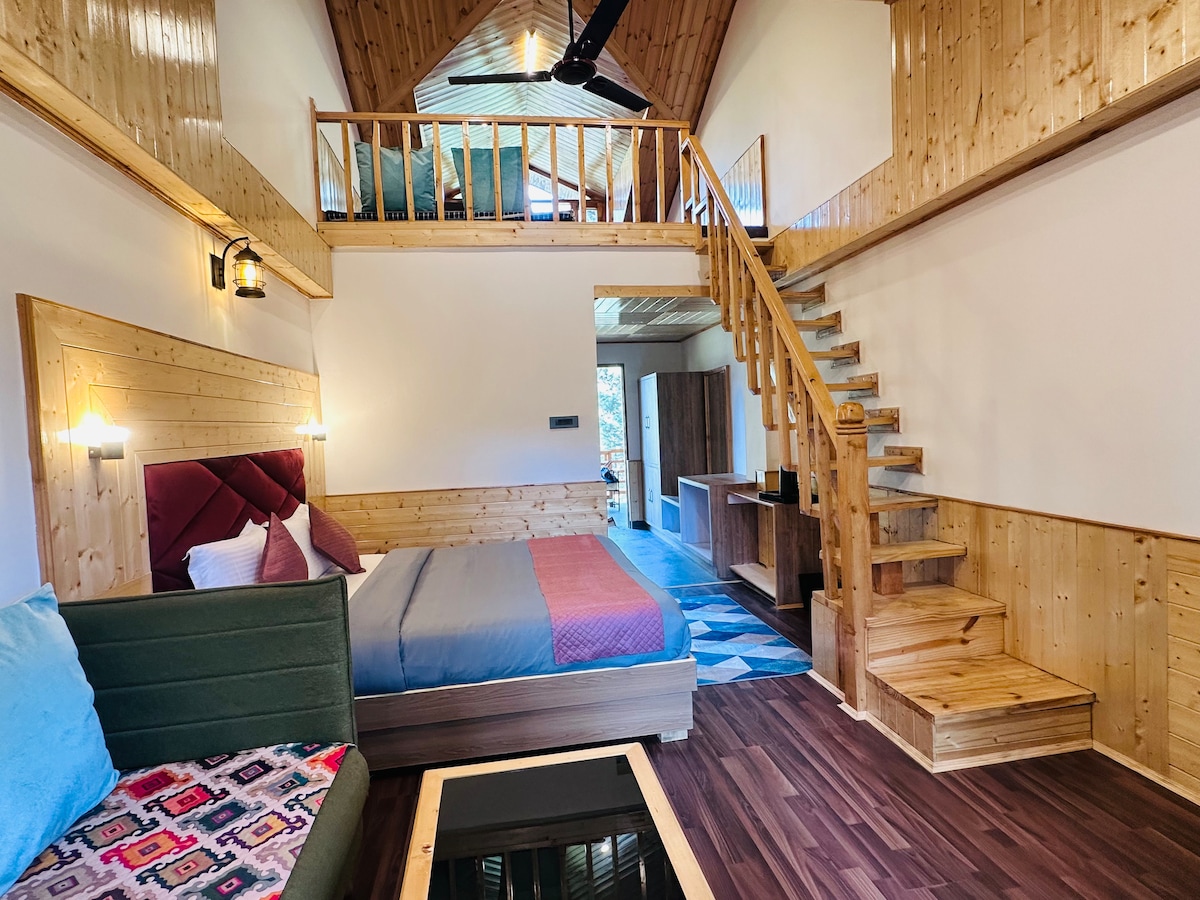 Witaj w spokojnej kryjówce w Himalajach, gdzie pachnące sosnami powietrze, śpiew ptaków i rozległe widoki na góry nadają rytm każdemu dniu. Ten położony w spokojnej dolinie obiekt łączy w sobie rustykalny urok i przemyślane udogodnienia – idealne na powolne poranki i pełne gwiazd noce. • Spacery po lesie, wioskowe szlaki i łagodne jednodniowe wędrówki zaczynają się niemal u progu domu. Możesz spotkać himalajskie ptaki i motyle. • Krótka przejażdżka samochodem prowadzi do punktów widokowych, pikników nad rzeką i lokalnych targów, gdzie można zrobić codzienne zakupy.