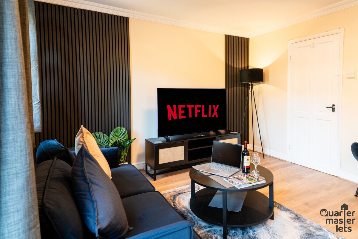 Piękny, nowo wybudowany apartament Portobello Riverside na granicy idyllicznego Royal Leamington Spa i historycznego Warwick Town 1 sypialnia typu king size z łazienką w pokoju głównym w tym dwupokojowym mieszkaniu dla całego mieszkania. W pełni wyposażona nowoczesna kuchnia wyposażona w urządzenia SMEG. Mieszkanie oferuje drugą nowoczesną łazienkę. Salon jest wyposażony w elektryczną sofę rozkładaną, a Ty możesz cieszyć się ulubionym programem lub filmem na telewizorze Smart TV z usługami Sky. WiFi.