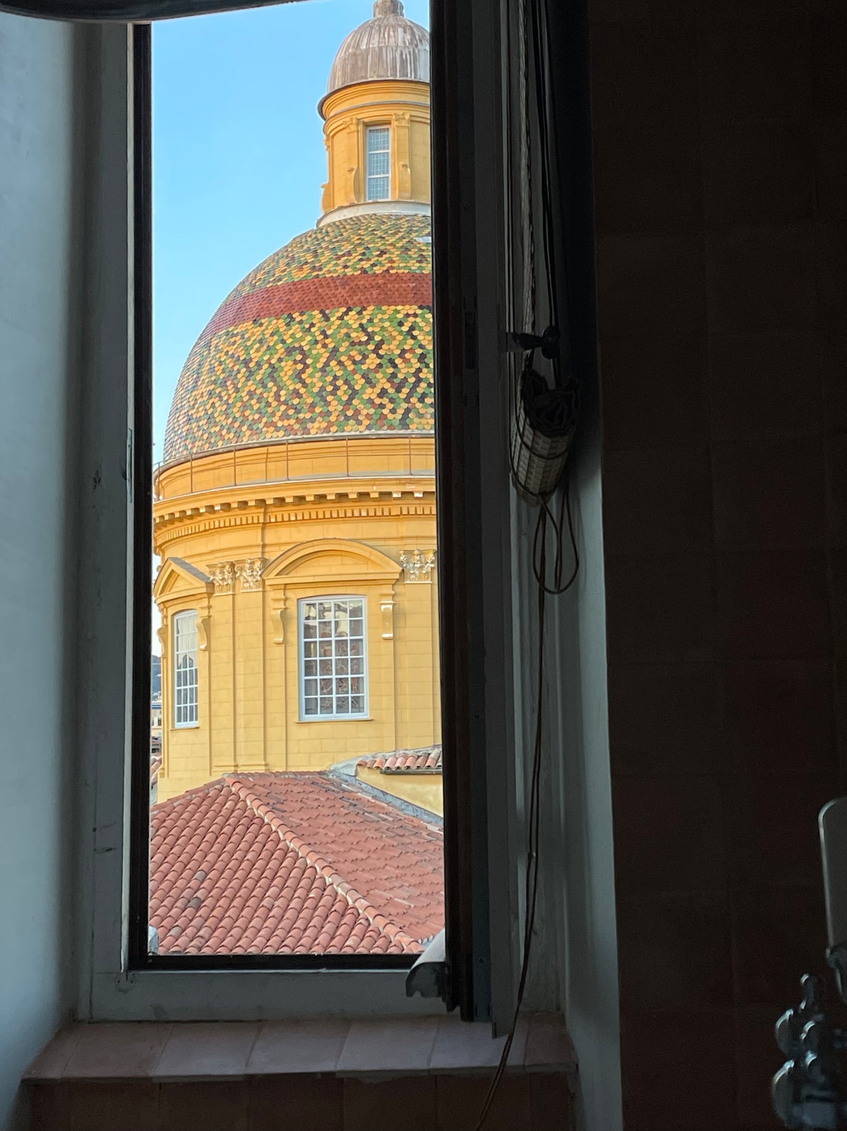 Śródziemnomorski wypoczynek z widokiem na kopułę na dachu.