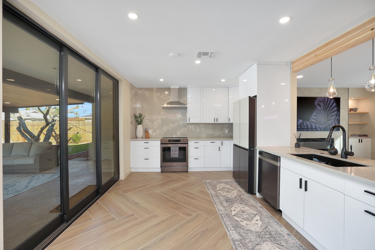 Witaj w La Moderna! PODGRZEWANY BASEN i WANNA Z HYDROMASAŻEM Ten pięknie odnowiony dom został zaprojektowany tak, aby pozwolić Ci skorzystać z najlepszych cech Scottsdale. Ciesz się przesuwanymi ścianami, ping pongiem na świeżym powietrzu, dużym patio, 3-dołkowym putting greenem i tarasem przy basenie. La Moderna oznacza „Nowoczesny” w języku włoskim, ponieważ przestrzeń została odnowiona od góry do dołu, aby emanować nowoczesnym, a jednocześnie ciepłym i przyjaznym klimatem. Jesteśmy pewni, że nigdy wcześniej nie korzystałeś z takiego miejsca. Nr licencji 2038406