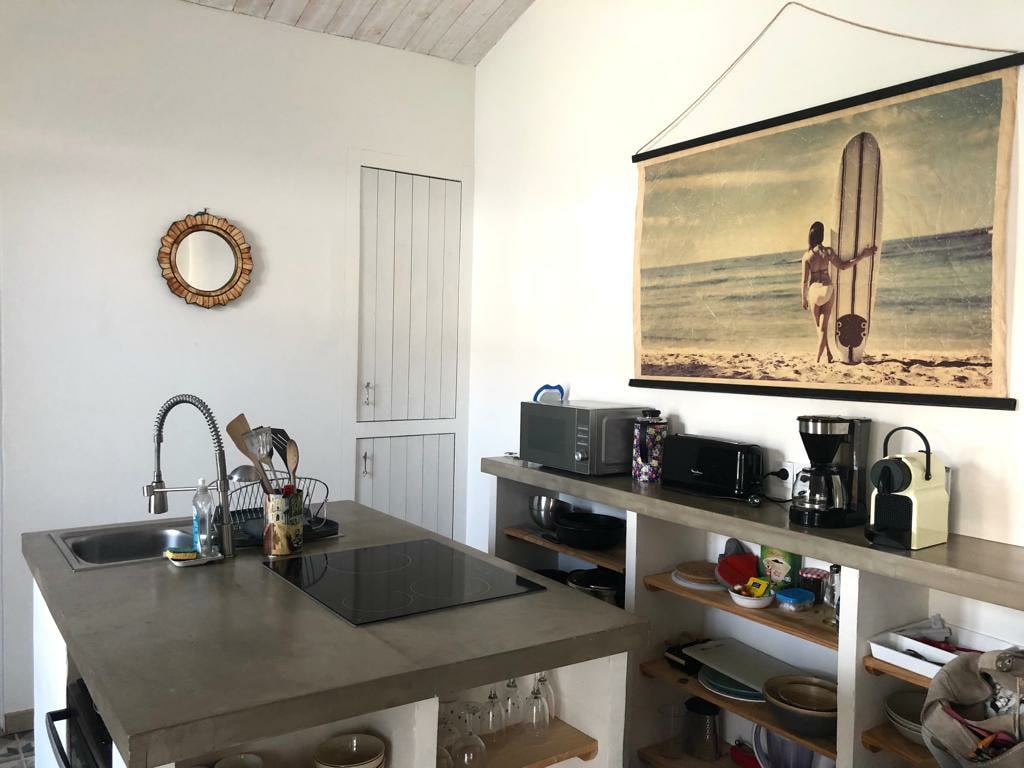 Nowe studio w pięknej małej wiosce La Cotinière, 5 minut spacerem od portu, sklepów (piekarnia, targ, sklep spożywczy, wypożyczalnia rowerów, apteka itp.) i plaży. Na nieruchomość składają się: • W pełni wyposażona kuchnia, piekarnik, kuchenka mikrofalowa, płyta indukcyjna, zmywarka, telewizor, Wi-Fi... • Sofa: pościel 140 Dunlopillo, pościel kabina prysznicowa, umywalka, toaleta, suszarka do włosów, pościel toaletowa • salon ogrodowy, grill