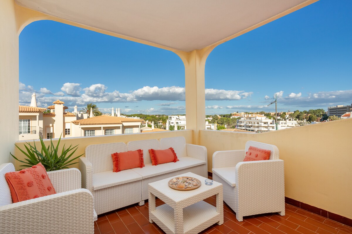 This modern and spacious holiday apartment, which is only 100 meters from the beautiful Praia Falesia, is perfect for two couples or small families with children. It’s located on a typical Portugese square near popular towns as Albufeira and Vilamoura and only a 25 minutes’ drive from Faro airport. On the square itself you find a supermarket, tourist shops and plenty of restaurants and bars. Your hosts are speaking Dutch, English, German, Portuguese and a bit French