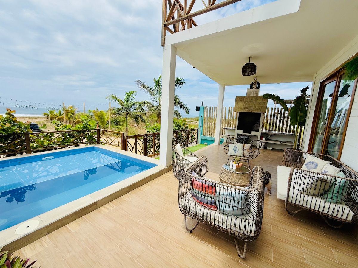 Raj nad oceanem. Ucieknij do tej nadmorskiej oazy, kilka kroków od plaży, gdzie spokój łączy się z bliskością tętniącej życiem Montañita. Ciesz się spokojem w domu i zaledwie 15 minut spacerem po plaży, zanurz się w akcji, restauracjach i życiu nocnym. Idealne połączenie na niewybaczalne wakacje! Ten piękny dom oferuje zapierające dech w piersiach panoramiczne widoki, ozdobiony plażowym klimatem i relaksem, zachęca do harmonii i regeneracji.