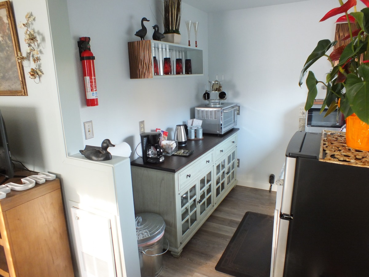 Wygodny domek w stylu studio o powierzchni 400 stóp kwadratowych z otwartą koncepcją. Malownicze 5 akrów między Sequim i Port Angeles, goście mają idealną lokalizację, aby być blisko Parku Narodowego Olympic, wędrówek i atrakcji turystycznych. Ten przytulny dom z dala od domu oferuje kabinę prysznicową, w pełni wyposażoną kuchnię (z niezbędnymi artykułami spożywczymi), klimatyzację i ogrzewanie, patio na świeżym powietrzu, łóżko typu queen size, podwójną sofę do spania, kominek elektryczny, telewizor i szybkie Wi-Fi Starlink. Domek zbudowany głównie z materiałów pochodzących z recyklingu!