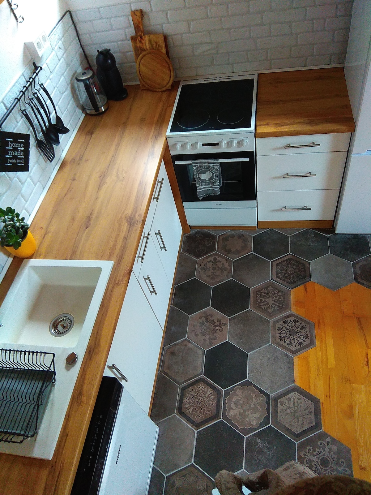 The apartment features a bright and spacious bedroom with a luxurious double bed, complemented by soft textures and neutral tones. The bathroom, equipped with modern amenities, includes a shower set within the original historical arch of the house, adding unique character to the space. This apartment is the perfect choice for those seeking a blend of modern comfort and the ambiance of a historic town 🤍