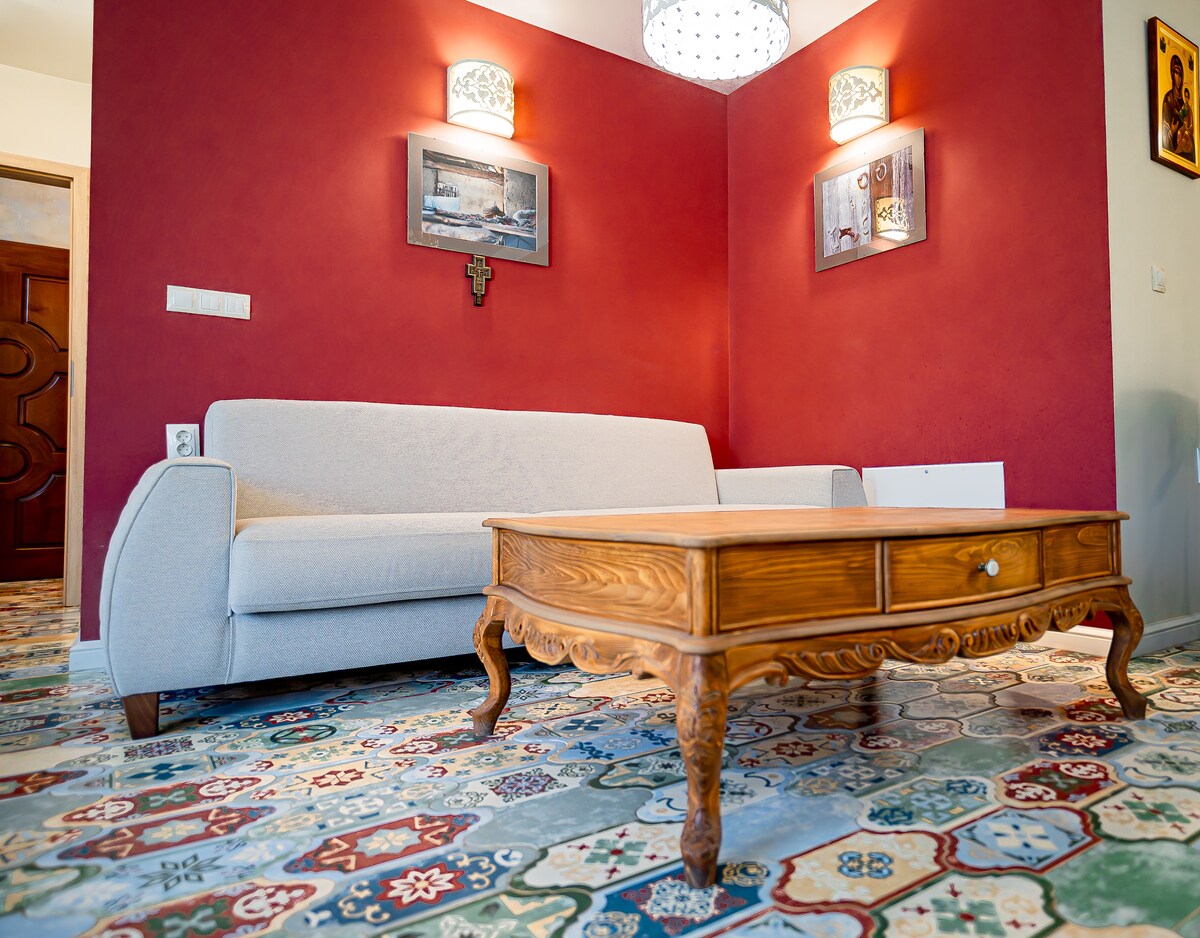 Baw się dobrze z całą rodziną w tym przytulnym i nowoczesnym miejscu ukrytym głęboko na łonie natury . To zupełnie nowy, doskonale umeblowany apartament w mieście Shumen, dla niepalących. Usytuowany w cichej okolicy, prawie przy wyjeździe z miasta na płaskowyż Shumen, na drodze do pomnika „Założyciele państwa bułgarskiego” w cichej i spokojnej okolicy w pobliżu lasu sosnowego, a jednocześnie 10 minut spacerem od centrum Shumen. Nie pobieramy dodatkowych opłat za sprzątanie.