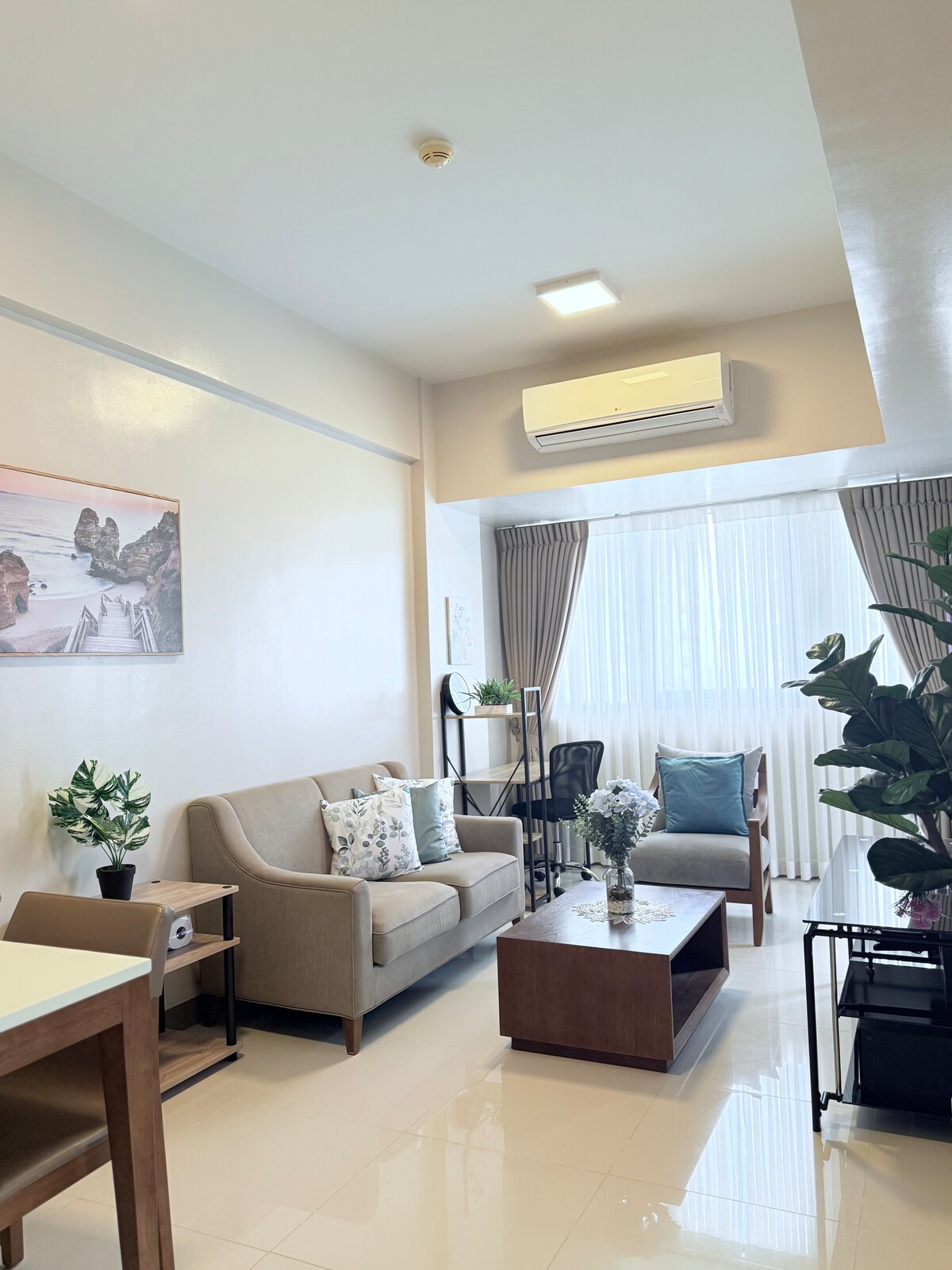 Witamy w BlueCoast Haven, nowo odnowionym, przestronnym mieszkaniu z 1 sypialnią, idealnym na wycieczki i rodzinne wakacje. W samym sercu tętniącego życiem Mactan Newtown, oferuje wyjątkowy miejski styl życia. Łatwy dostęp do wszystkiego, od jedzenia ulubionych lokalnych potraw, picia ulubionej kawy, zanurzenia się w basenie, relaksu na plaży. Wszystko to znajduje się zaledwie kilka minut spacerem od naszego przytulnego miejsca. Zadbaliśmy o to, aby ta przestrzeń sprawiła, że Twój wypoczynek będzie niezapomniany, w pobliżu lotniska Mactan z basenem i plażą