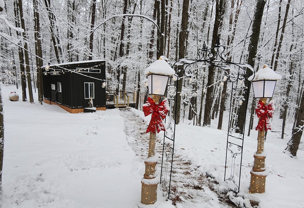 Wpadnij do króliczej nory, aby doświadczyć naszego wyjątkowego podejścia do małego domku inspirowanego Krainą Czarów. Dzięki łóżku typu Queen size, w pełni wyposażonej kuchni i łazience oraz wszystkiemu pomiędzy, z pewnością będziesz mieć relaksujący wypoczynek... z odrobiną przygody! Przestronny taras (z wanną z hydromasażem) wychodzi na las i jest idealnym miejscem na filiżankę kawy lub kieliszek wina. Underwood Tiny House został stworzony, aby dać każdej osobie, która przejdzie przez jego drzwi, doświadczenie jak żadne inne!