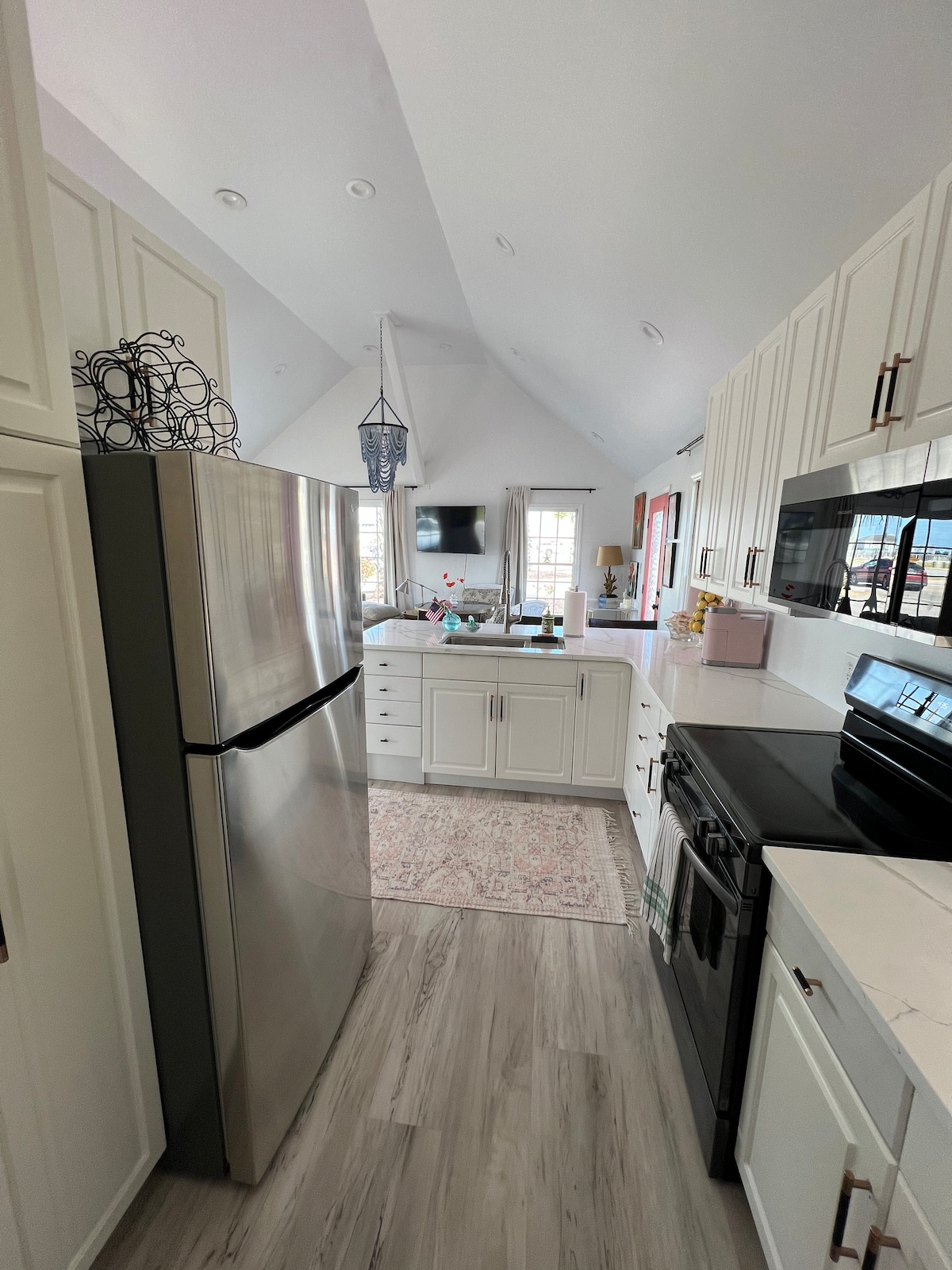 Virginia’s Country Cottage, a charming guest house constructed in 2020, nestled on 40 acres behind our residence. Enjoy your own private yard and relax on the new outdoor patio featuring a gas fire pit. This 950-square-foot retreat offers tranquility in a secluded setting while still being close to Western Blvd. Nearby amenities include restaurants, grocery stores, a movie theater, mall, and Walmart, making it an ideal spot for those visiting cities surrounding onslow county.