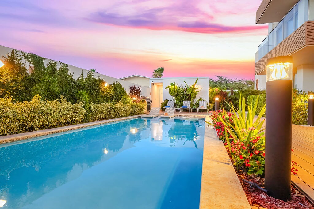 Ten apartament z jedną sypialnią oferuje wszystko, co niezbędne do relaksu i wypoczynku. Zrelaksuj się w prywatnym basenie, idealnym do orzeźwiających kąpieli lub wylegiwania się w słońcu. Jest też grill, który dopełni doświadczenia życia na wyspie. Centralnie położony w miłej okolicy. 10 minut jazdy do najbliższej plaży i lotniska. 10 minut jazdy do centrum miasta, a także dużych supermarketów. Mniejsze sklepy spożywcze można znaleźć w odległości kilku minut. 5 najlepszych food trucków Aruby można znaleźć w promieniu 5 minut.
