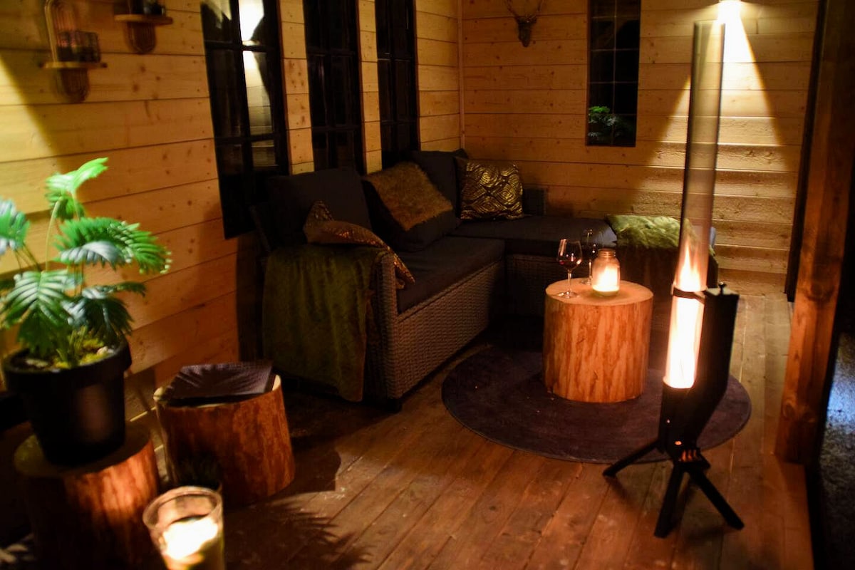 Detta unika ställe är placerat intill skogens rand men ändå närhet till affärer och god kommunikation, inrett med varsamhet och eftertanke. Njut i den varma bastun med utsikt ut över skogen, svalka av dig ute på den stora verandan omsluten av skogens lugn och tystnad. Vem vet det kanske kikar fram något rådjur eller annat vilt djur mellan trädens stammar. Somna sedan gott omsluten av en lugn och behaglig atmosfär, vakna pigg, utvilad och nyfiken inför den nya dagens upptäckter