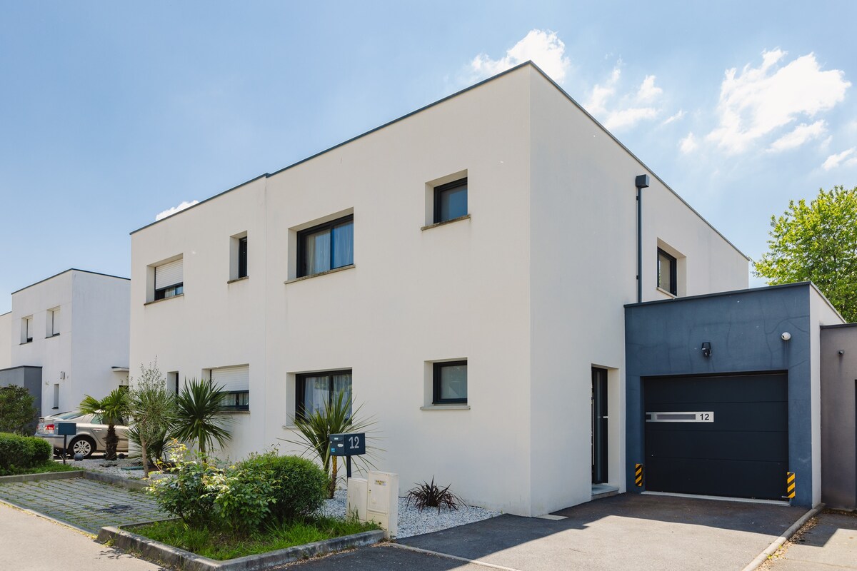 Nasz ostatni dom, położony na osiedlu, jest naszym głównym miejscem zamieszkania, w którym przebywamy co drugi tydzień. Ma 4 sypialnie, taras i słoneczny zamknięty ogród z widokiem na okolicę, idealny do jedzenia na zewnątrz. Ciche otoczenie. Autobus do Rennes, 10 minut samochodem od Métro Fréville, 20 minut od dworca kolejowego i lotniska. Idealny na zwiedzanie St-Malo i Mont-Saint-Michel (1 godzina), lasu Brocéliande (40 minut), Vannes i plaż Morbihan (1 godzina 20 minut). Przygotuj pościel i ręczniki.