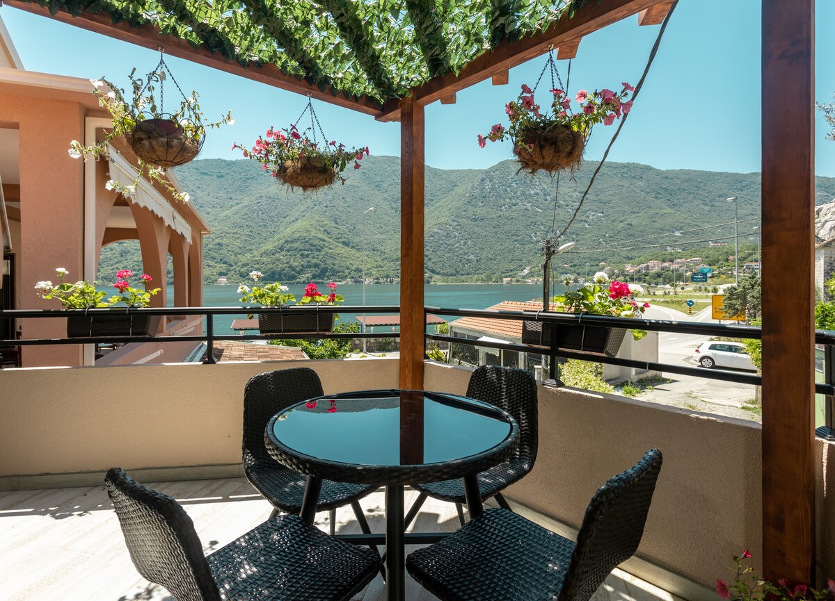 Apartament jest nowo wybudowany, luksusowy, o łącznej powierzchni 60 m2 i posiada salon, jadalnię, kuchnię, łazienkę, sypialnie oraz taras z pięknym widokiem na Zatokę Boka. Apartamenty są nowoczesne, posiadają klimatyzację. Apartament posiada bezpłatny szybki bezprzewodowy internet oraz telewizję kablową. Przed apartamentem goście mają zapewnione bezpłatne miejsce parkingowe. Odwiedź nas raz, a będziesz wracać...