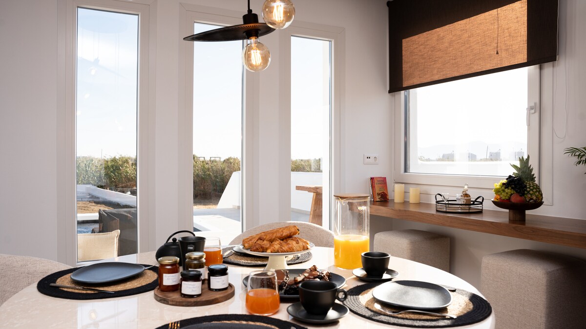 Willa Arismari znajduje się na spokojnym zboczu wzgórza, otoczona naturalnymi głazami, z widokiem na piękne wybrzeże Orkos. Mamy zapierający dech w piersiach panoramiczny widok na Morze Egejskie i sąsiednią wyspę Paros. Znajdujemy się między główną plażą a mniejszymi zatokami Orkos. Podziwiając widoki, które oferuje Villa Arismari, przygotuj się na zrobienie najbardziej niesamowitych selfie. Villa Arismari to pięknie zaprojektowana willa o minimalistycznej architekturze cykladowej.