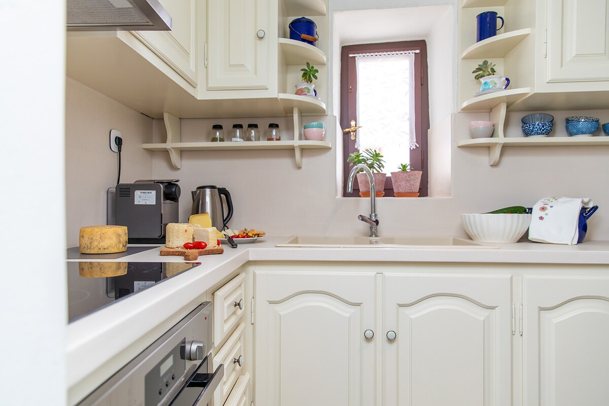 Kambones 1615 is a lovingly restored historic home which has been in our family for centuries. Our Venetian ancestor Michel Sanudo married into our family in the year 1615, giving the house its current form, with the balcony doors overlooking a valley with ancient olive groves . The old furniture has been restored and every beautiful feature has been preserved. The thick stone walls make it cool in summer and warm off season . We are certified by Ecotourism Greece .