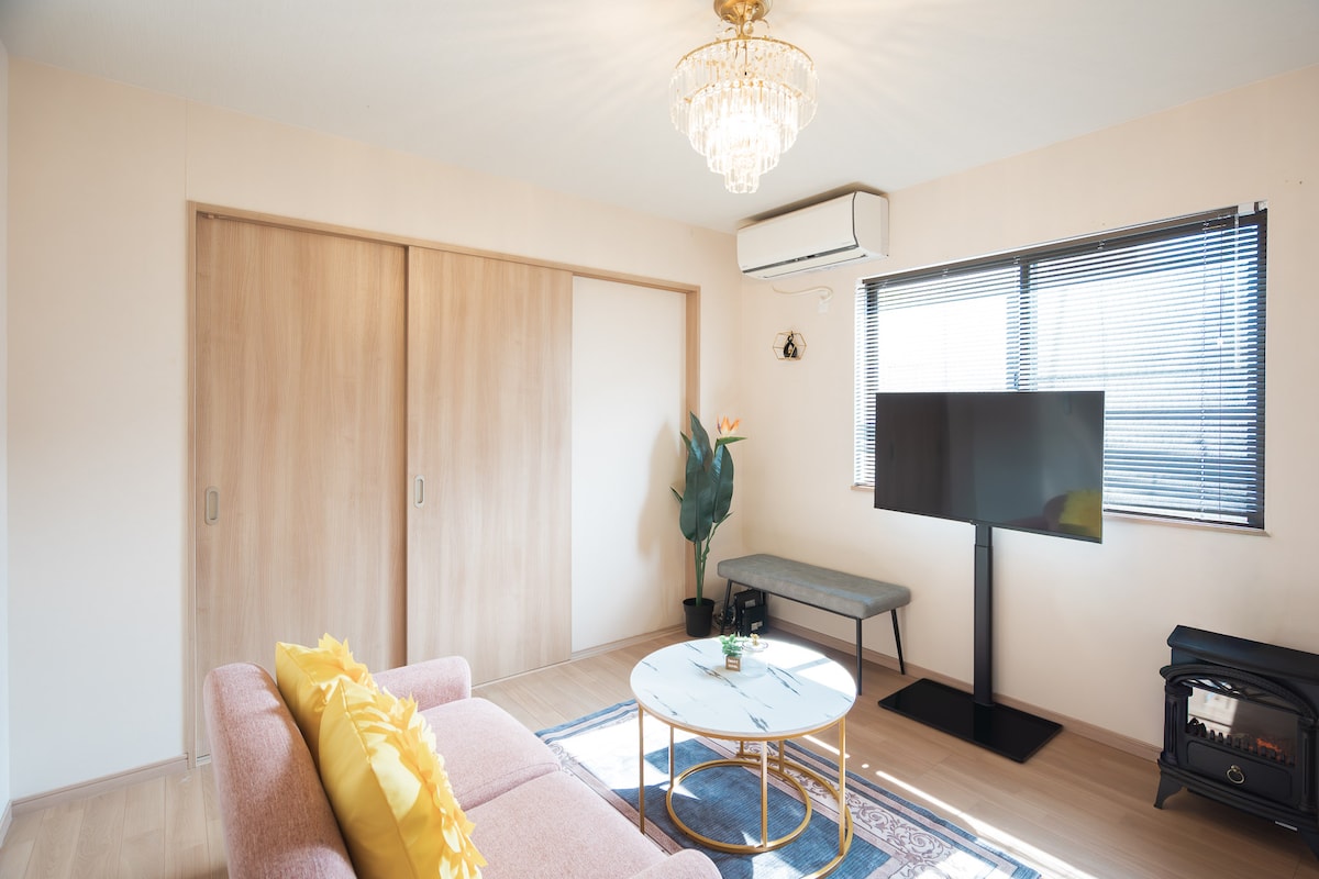 ■Sypialnia Jest jedna sypialnia. * W pokoju znajduje się łóżko i rozkładana sofa. ■Kuchnia Dostępne są podstawowe przybory kuchenne, naczynia, kuchenka mikrofalowa, toster, kuchenka, czajnik elektryczny, urządzenie do gotowania ryżu i lodówka. Wszystkie udogodnienia w■ pokoju są dostępne do użytku. Mamy prawie wszystko, czego potrzebujesz do codziennego życia. * Zabieranie wyposażenia jest surowo zabronione. ■Łazienka, prysznic i toaleta są oddzielone.  W łazience znajdują się takie udogodnienia jak żel do mycia ciała, szampon, odżywka, suszarka do włosów itp. Możesz również korzystać z pralki i środków piorących, więc nie musisz iść do pralni samoobsługowej. ■Darmowe Wi-Fi Bezprzewodowe Wi-Fi jest bezpłatne podczas pobytu. * Wi-Fi jest wbudowane, więc nie można go wynieść. Odtwarzacz 🔳Blu-ray Oglądaj swoje ulubione filmy. 2 ■bezpłatne rowery🚲 ■Recepcja Nie ma recepcji. Jest to obiekt z samodpłatnym zameldowaniem. * Jeśli masz jakiekolwiek pytania, skontaktuj się z gospodarzem.