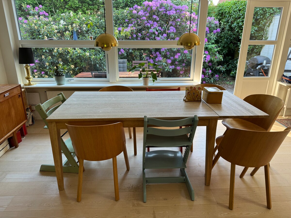 Parter 2-piętrowej, przytulnej willi, w pobliżu transportu publicznego i 10 minut spacerem od plaży. Położony w pięknej, spokojnej okolicy Hellerup 6 km od centrum Kopenhagi. S-train znajduje się 5 minut spacerem od hotelu i zabierze Cię do Kopenhagi w 10 minut. W apartamencie znajduje się duży taras i ogród na ciepłe letnie dni/noce. 3 sypialnie z podwójnymi łóżkami, duża przestrzeń do pracy z sofą, która może być używana jako pojedyncze łóżko. Bezpłatny parking na ulicy i zadaszone miejsce parkingowe na podjeździe.
