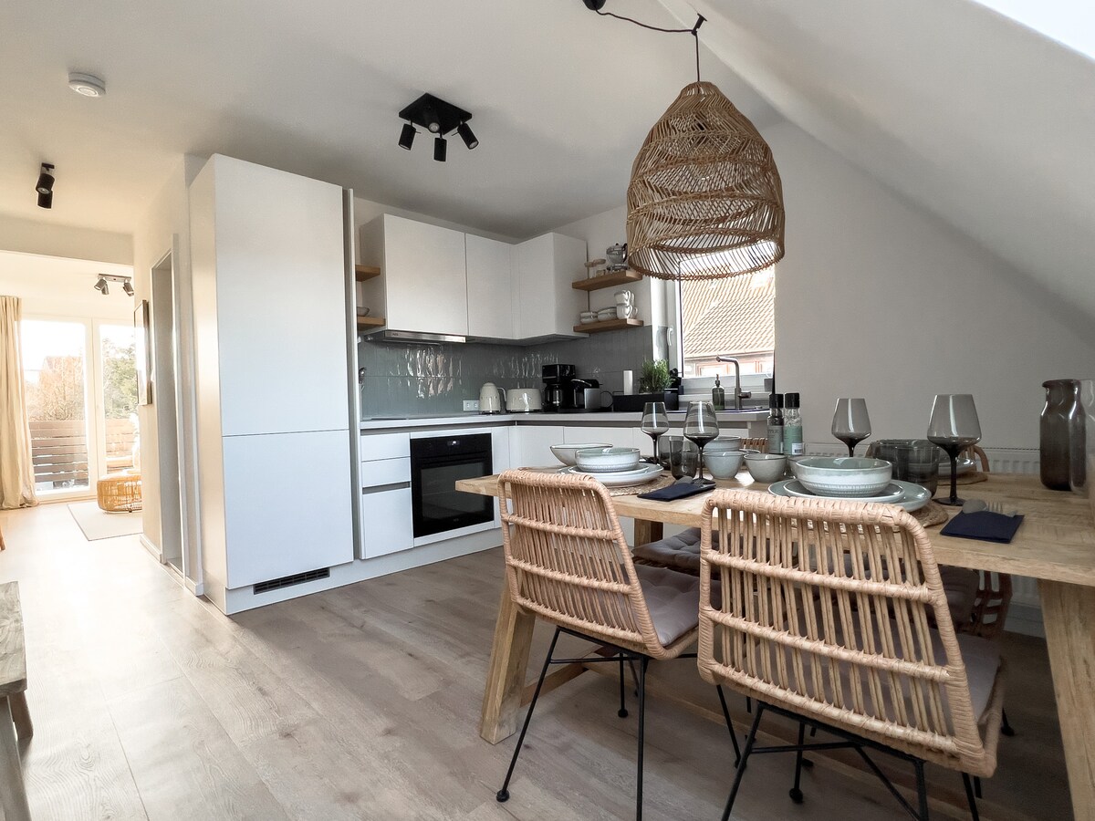 Nowoczesna architektura i design spotykają się z naturą i idyllą w pięknym Eiderstedt: Na 140 m2 powierzchni mieszkalnej, nowy budynek z 3 sypialniami i 2,5 łazienkami, ukończony w 2017 roku, oferuje lekkie pokoje, aby rodzina i przyjaciele czuli się dobrze. Tutaj znaleźliśmy nasz idealny wypoczynek nad Morzem Północnym i zaprojektowaliśmy go w taki sposób, że możemy cieszyć się przyrodą, spokojem i przestronnością bez konieczności rezygnowania z wygodnych radości współczesnego życia... Architektura, aby czuć się dobrze!