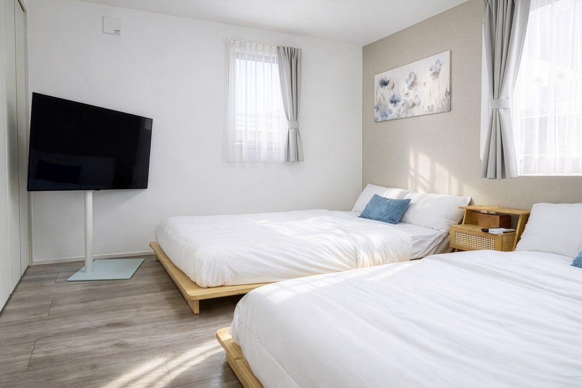 Otwarto w lipcu ◆2025 r.◆ Stacja Keikyu Kamata znajduje się w odległości 4 minut spacerem (300 m) i zapewnia doskonały dojazd z lotniska i dworca kolejowego. Bardzo dogodnie położone w pobliżu ulic handlowych, supermarketów i sklepów spożywczych. To piękny 6-piętrowy budynek wybudowany w kwietniu 2025 roku. Możesz używać go jako prywatnej przestrzeni, ponieważ jest to jedno piętro i jedne drzwi. Na 2-4 piętrze znajdują się trzy pokoje tego samego typu. Jest to przestronny pokój o powierzchni 60 m², więc możesz mieć komfortowy pobyt. Łóżko piętrowe jak w hotelu butikowym W pokoju tym mogą się zmieścić maksymalnie 8 osób. Są tu 3 łóżka półpodwójne, 2 pojedyncze łóżka i 1 dodatkowy materac. Łóżka są wykonane z materacy (Serta) i Nishikawa air, które są również używane w luksusowych hotelach. Zapewniamy szybkie bezpłatne Wi-Fi w budynku.Około 300 MHz w dół w paśmie 5 GHz · Telewizor 4K 75 ◆Dostęp◆ Stacja Keikyu Kamata znajduje się w odległości 4 minut spacerem, stacja JR Kamata, stacja Tokyu Kamata, 7 minut spacerem, Około 10 minut pociągiem z międzynarodowego lotniska Haneda Około 30 minut pociągiem do Shinjuku, Shibuya Około 10 minut pociągiem do stacji Shinagawa ◆W pobliżu◆ W pobliżu znajduje się wiele płatnych parkingów (do 1500 jenów dziennie)