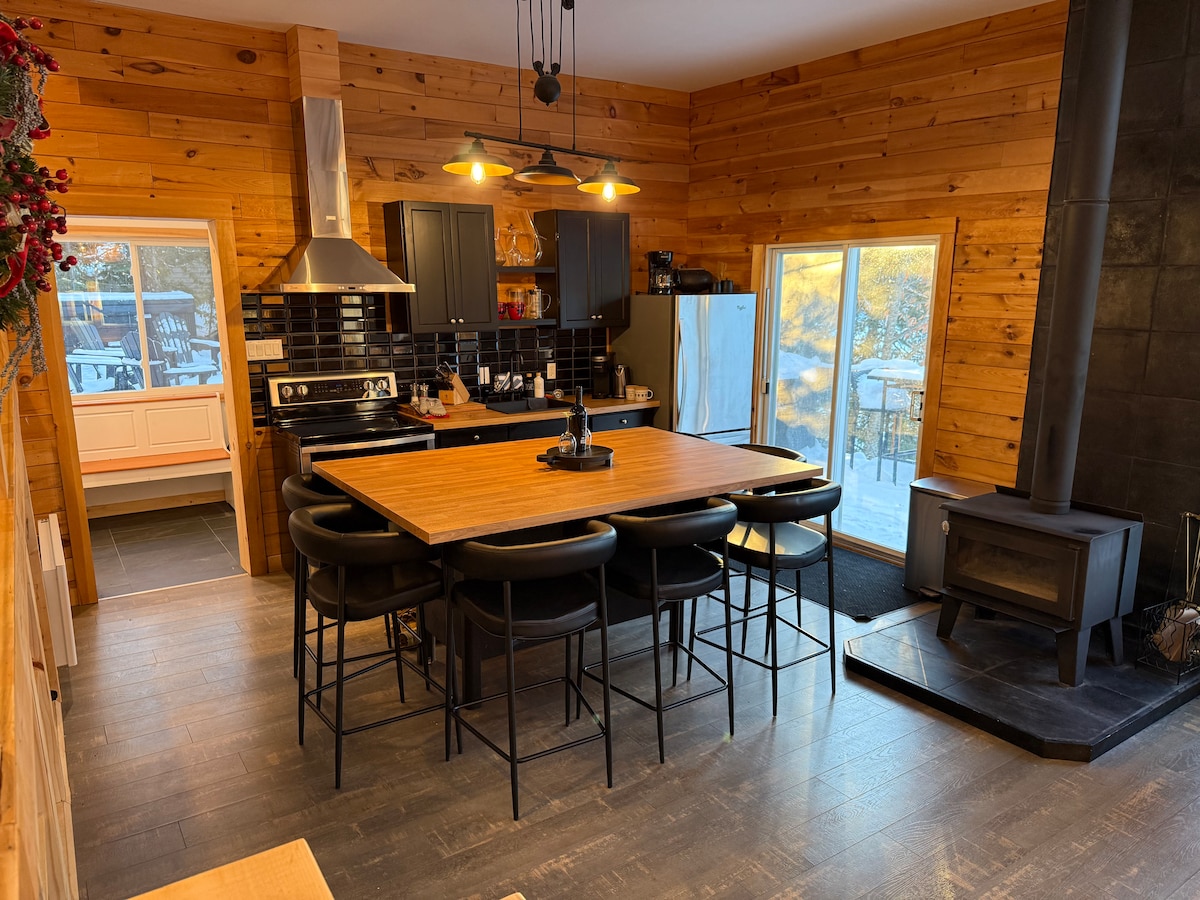 Witaj w La Khabine! Ta przytulna, nowoczesna chatka oferuje wszystko, czego potrzebujesz, aby się zrelaksować i poznać naturę. Ciesz się kieliszkiem wina z dźwiękiem trzaskającego ognia w kominku opalanym drewnem. Podziwiaj widok na las przez otaczającą podłogę do okien sufitowych. Zrelaksuj się w prywatnej saunie cedrowej na świeżym powietrzu. Naturalne produkty do samoobsługi, drewno na opał, mydło do prania i szybkie Wi-Fi są bezpłatne. Mamy nadzieję, że spodoba Ci się nasza mała chatka z oknami tak samo jak my :)