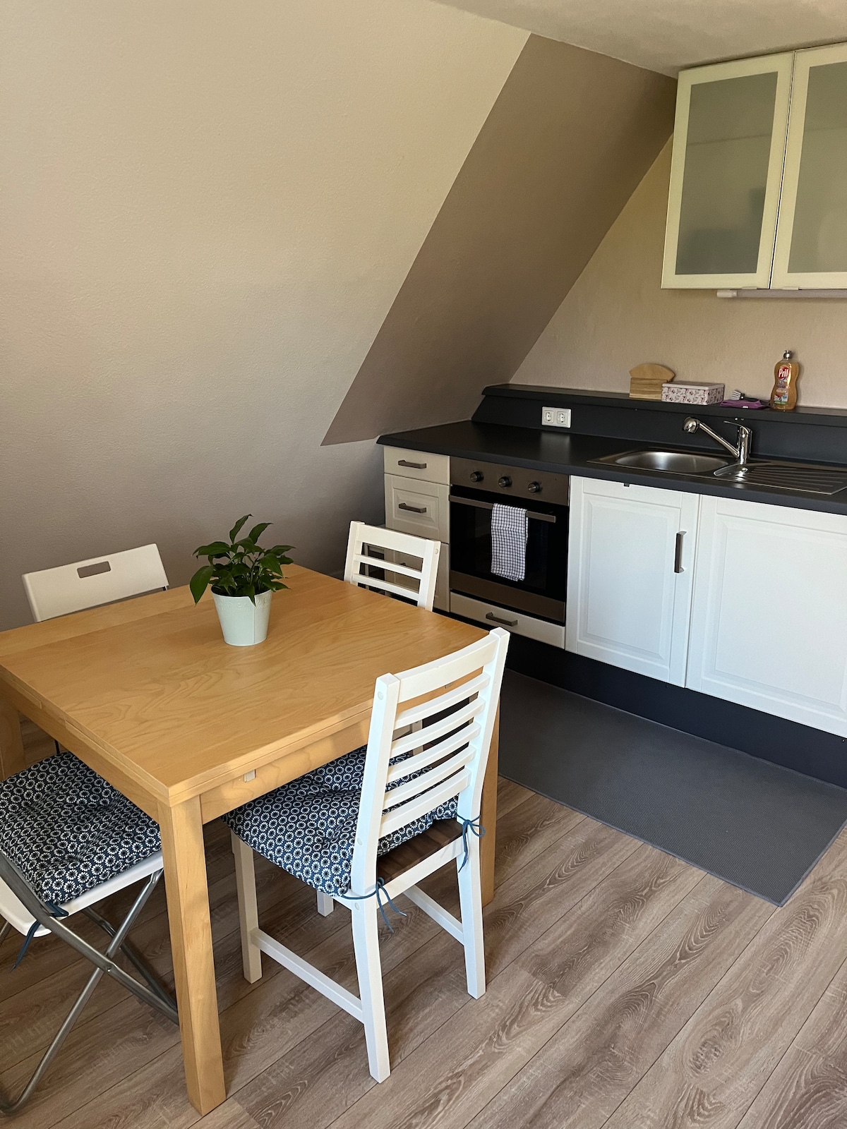 Oferuję Ci małe, niezależne mieszkanie na 2 piętrze mojego domu. Na 56 m2 znajduje się 1 sypialnia, kuchnia, salon z kącikiem jadalnym, mała łazienka i słoneczna loggia. Masz swobodny dostęp przez klatkę schodową, więc możesz przychodzić i wychodzić, kiedy chcesz. Sklepy i restauracje w odległości spaceru. Pobliskie plaże Falkensteiner z parkami linowymi i minigolfem, przystanek komunikacji miejskiej 2 minuty spacerem, przystań Fördedampfer 5 minut spacerem. Cieszę się na Twoją wizytę